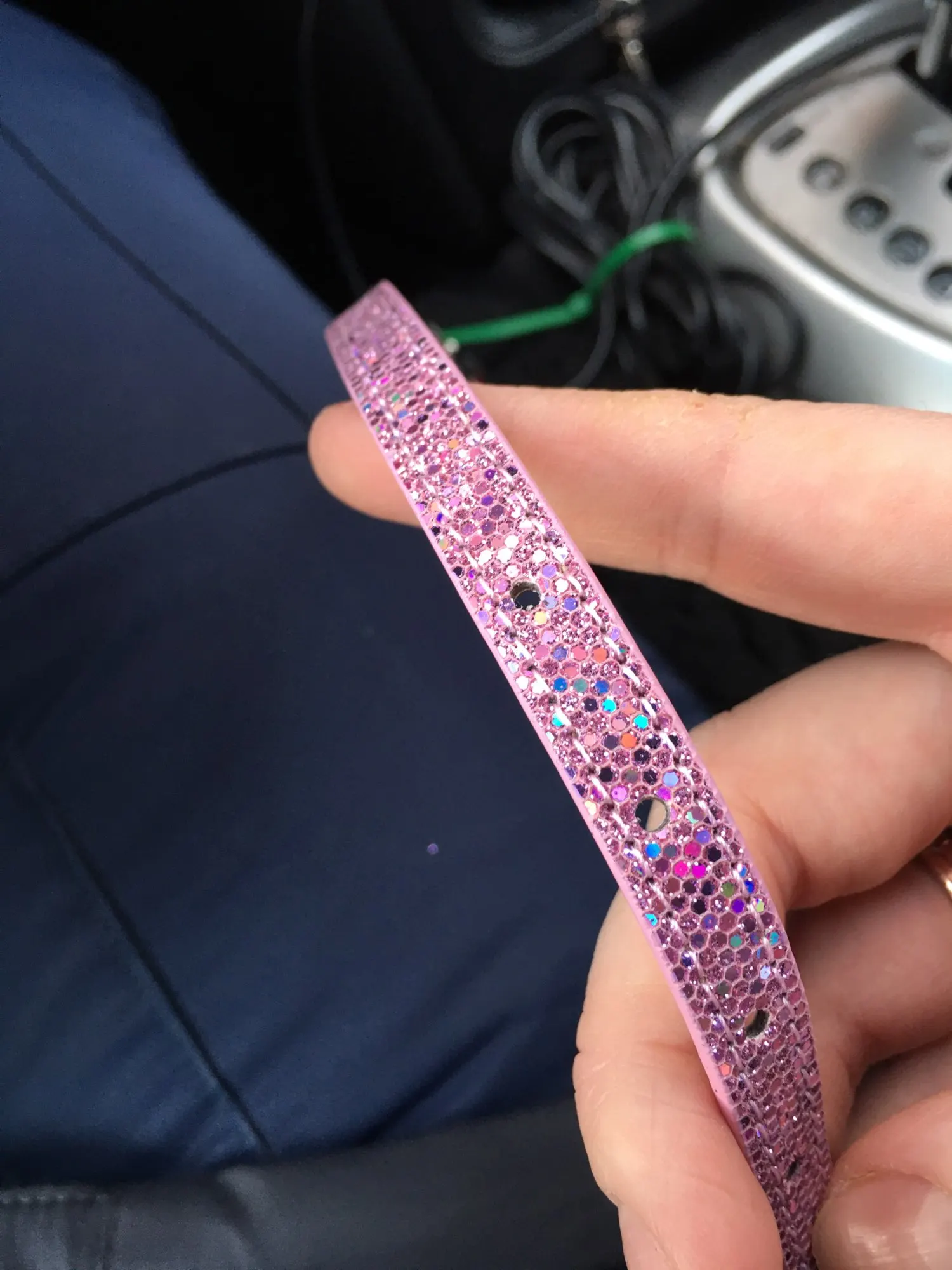 Очень милый воротник. Он идеально подходит моему щенку с достаточным количеством места для роста. Он действительно блестящий и девчачий.