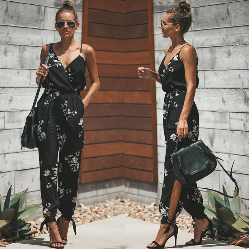 Женский комбинезон с цветочным принтом, без рукавов, на бретельках