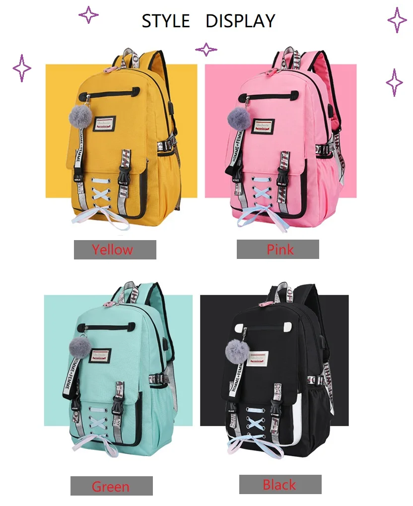Большие Школьные сумки для девочек-подростков с лентой, USB, школьн...