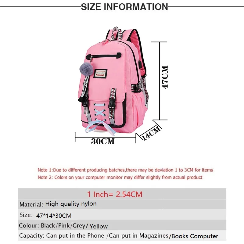 Большие Школьные сумки для девочек-подростков Usb с замком, противокражный рюкзак, женская сумка для книг, большая школьная сумка, молодежная сумка для отдыха