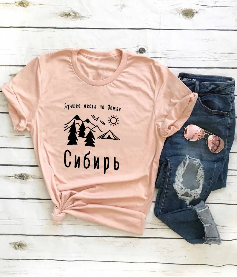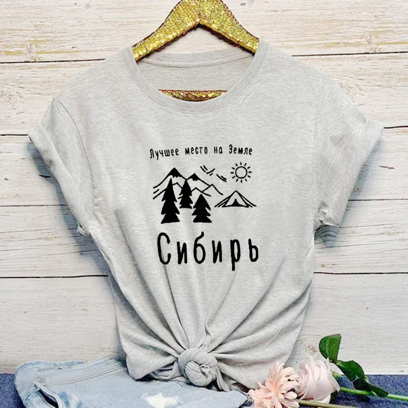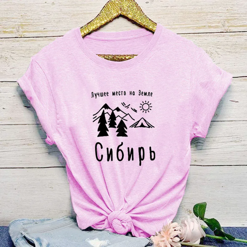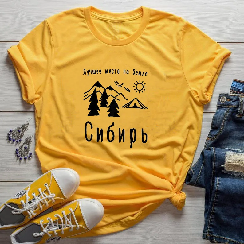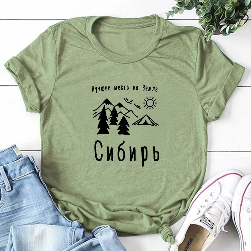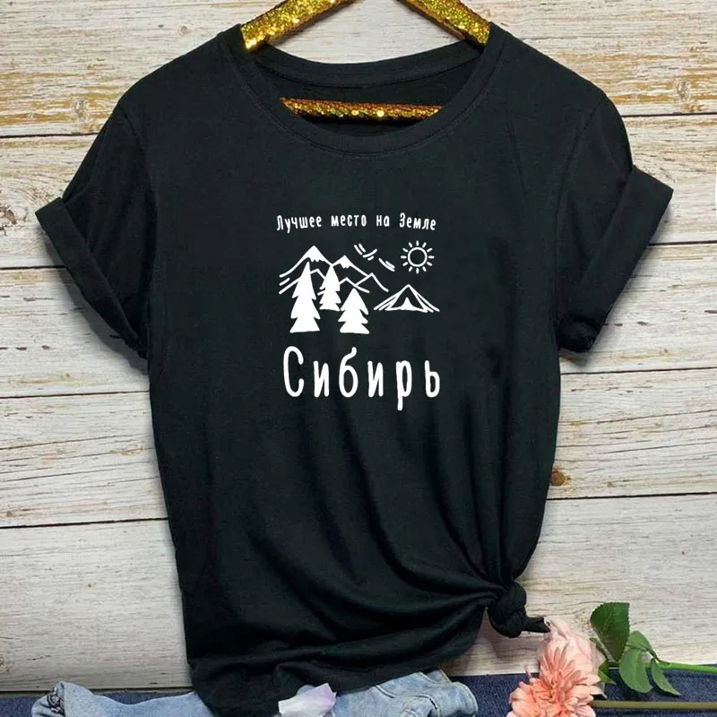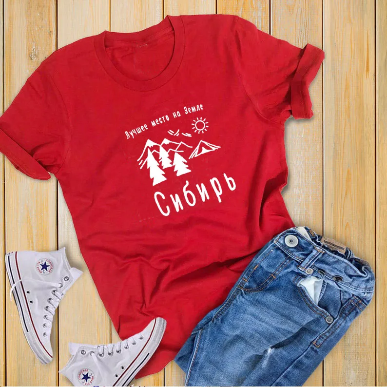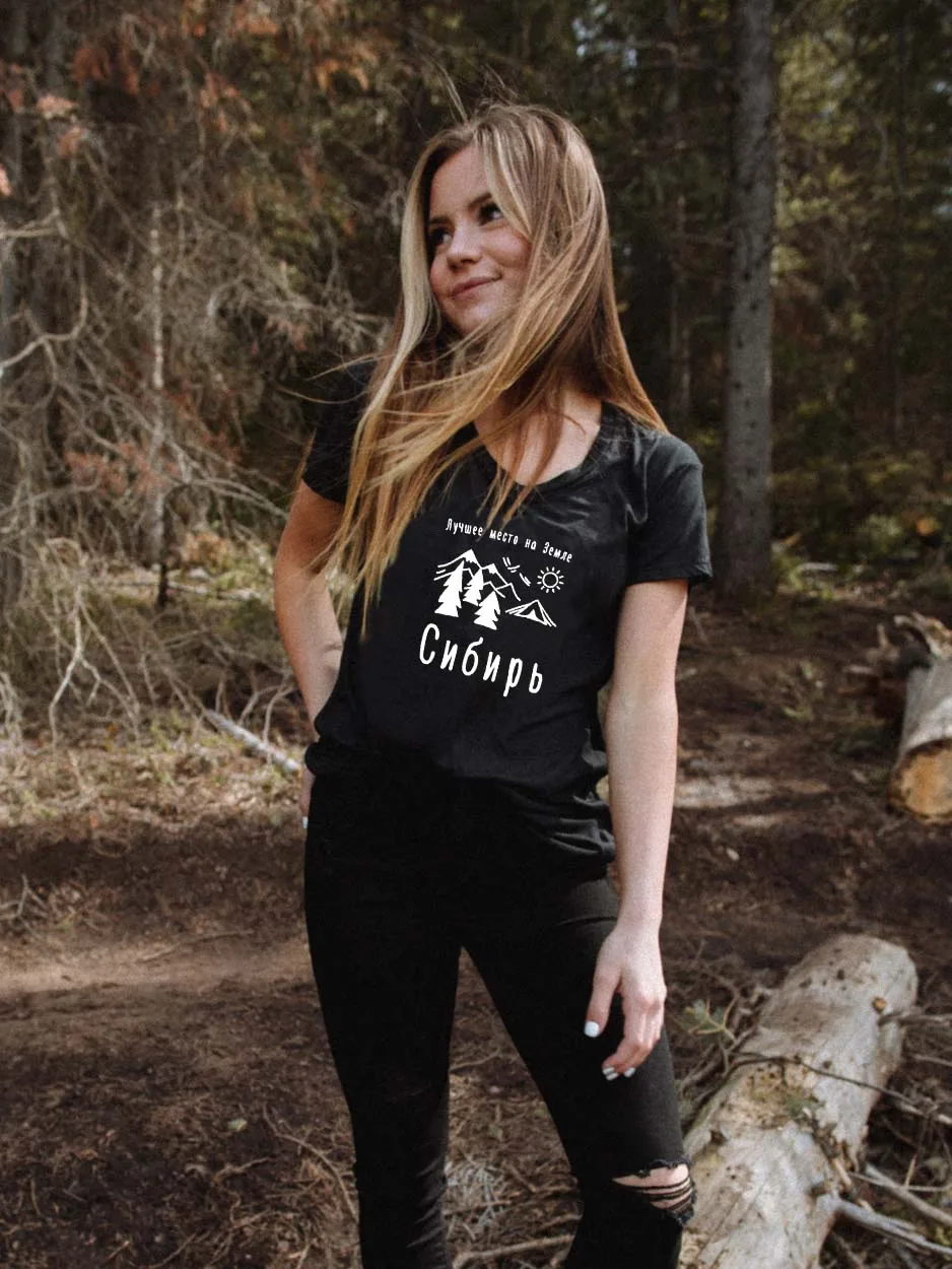 Лучшее место на земле Сибирь Русским Письмом Печатным Новое Прибытие Женская Лето Смешно Хлопок с коротким рукавом футболки Женская Жизнь Футболка