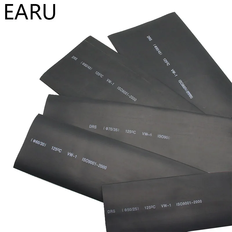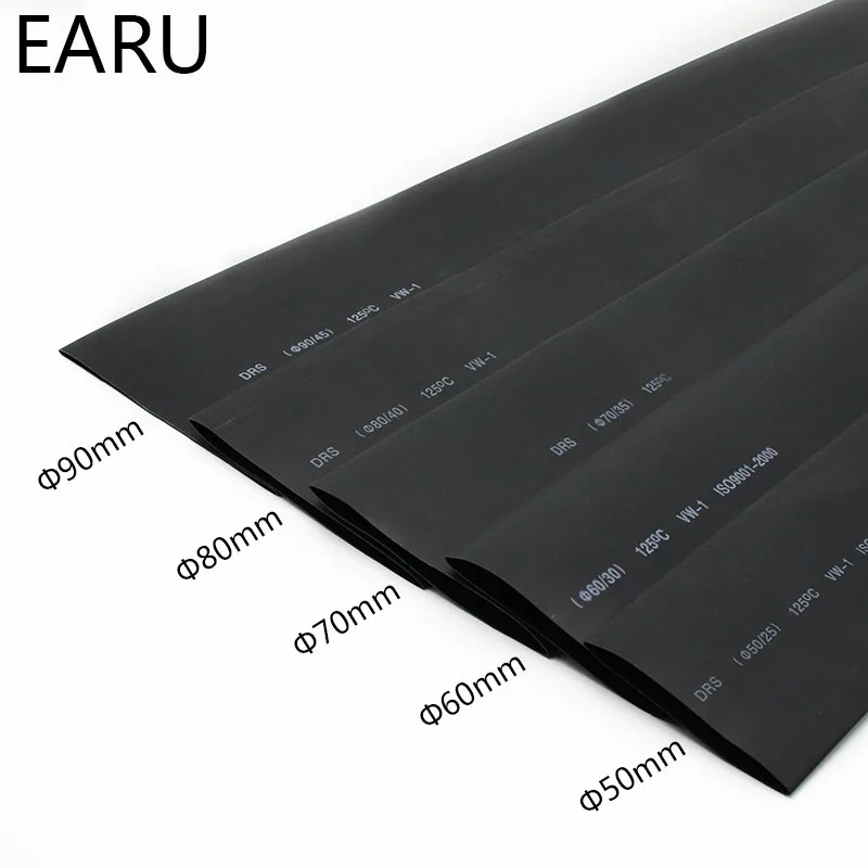 Термоусадочные трубки 1 метр 2:1, черные, 50 мм, 60 мм, 70 мм, 80 мм, 90 мм, термоусадочные трубки для проводов, Прямая поставка