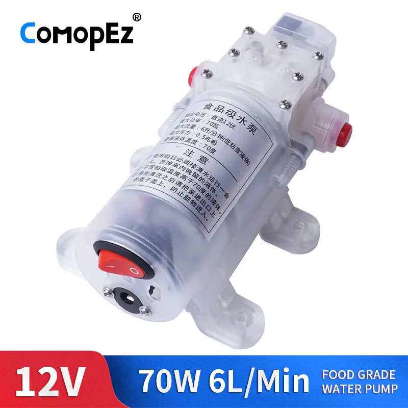 Мембранный Водяной насос с автоматическим контролем давления, 12 В постоянного тока, 70 Вт, 6 лмин, для пищевых продуктов