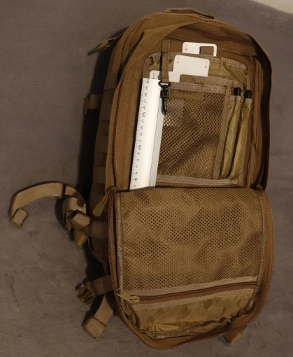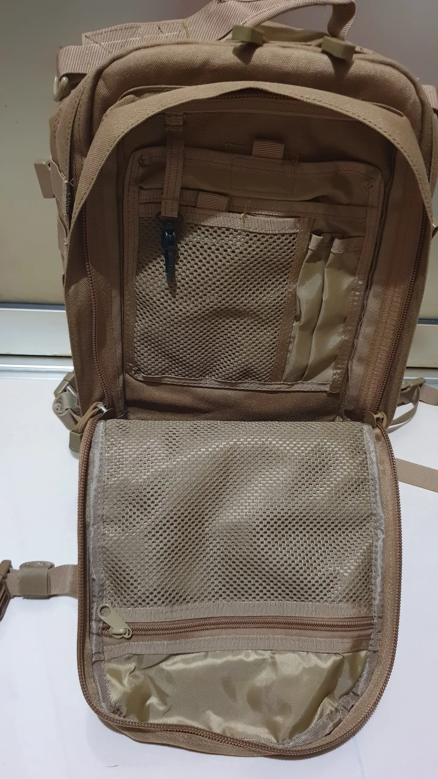Доставка хорошая. В целом качество сумки хорошее для использования, 1 день использования и путешествия, материал не толстый/тяжелый. Размер расширения 45 см (H)x24-25cm(L)x22-23cm(W) (для просмотра 23 см (w) полностью упакован передний отсек). Мой 15,6-дюймовый ноутбук (без чехла) можно вставить в основной отсек, но он плотно прилегает от конца до конца в нижней части сумки. Не уверен, что вы все еще можете вставить подкладку ниже для амортизации до конца. Внутренняя длина сумки должна быть не менее 28-30 см. Есть некоторая защита и для лучшей защиты, вам все равно понадобится дождевик для середины/сильного дождя. До сих пор не полностью загружен и не прикреплен Чехол molle, поэтому не могу оставить комментарий о прочности и комфорте сумки.