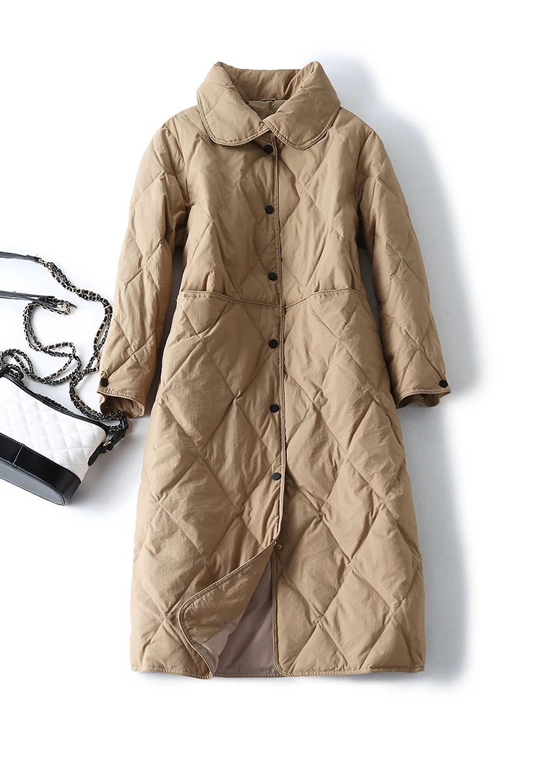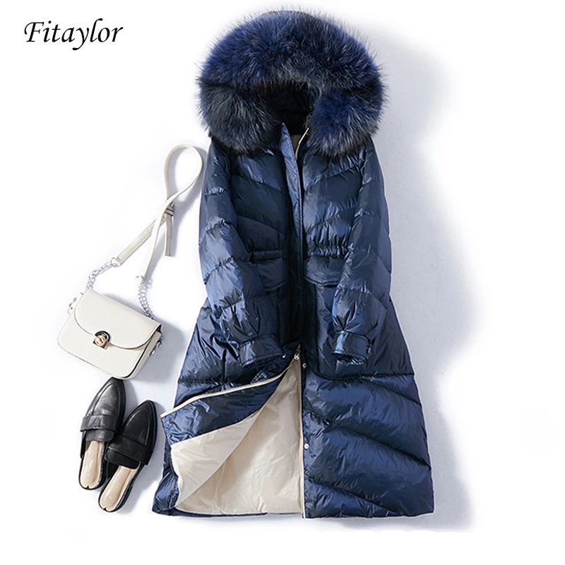 Fitaylor 2020, новинка, Зимний пуховик для женщин, белый утиный пух, однобортный, стоячий воротник, длинный рукав, парка, зимнее пальто