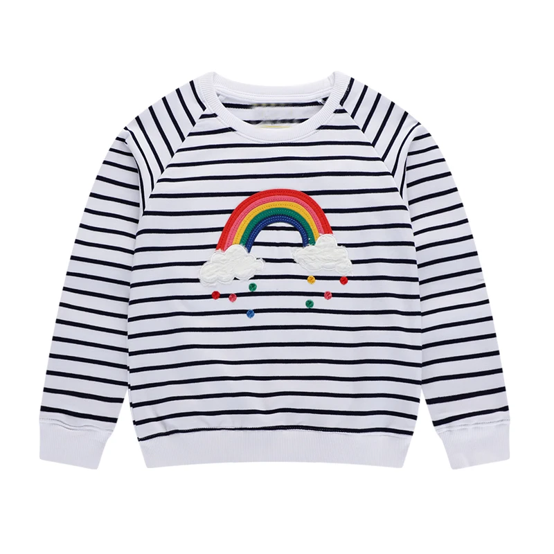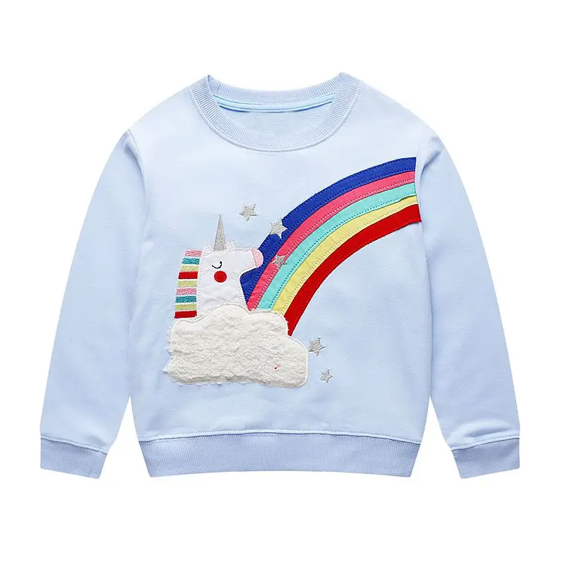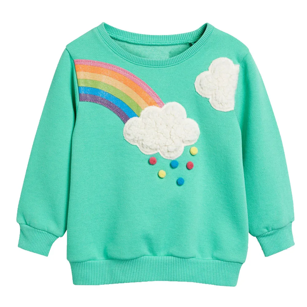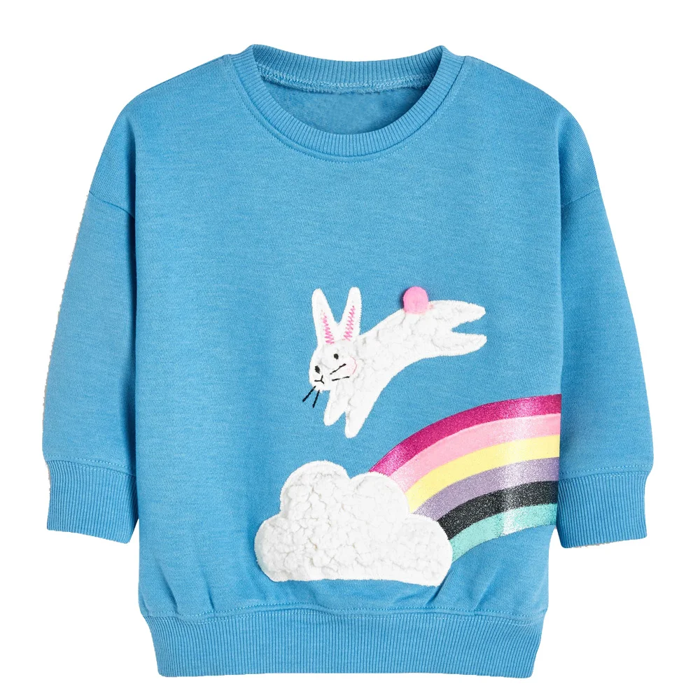 Толстовки для маленьких девочек; Хлопковые осенне-зимние детские толстовки с аппликацией; Одежда для девочек; Детский свитер с единорогом и радугой для малышей