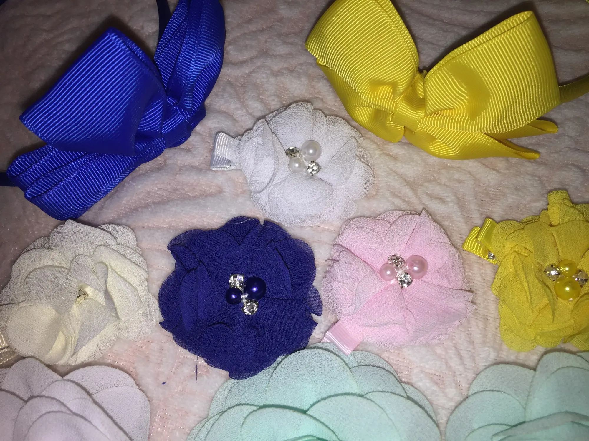 Заколка-бант из шифона, с жемчугом и цветком диаметром 2 дюйма, 1 шт.