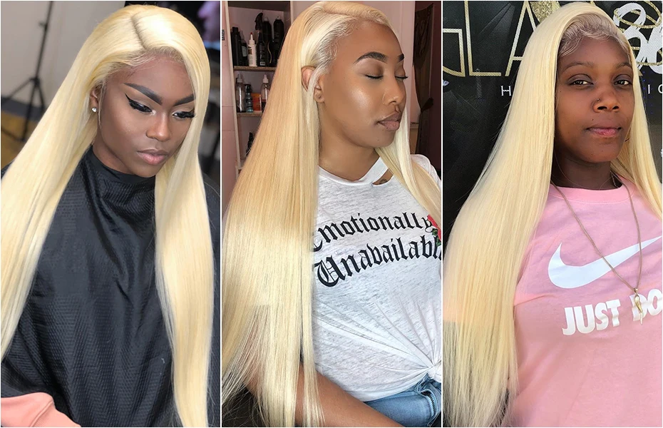 Средняя часть бесклеевая 613 медовый блонд кружевной передний парик бразильские Прямые кружевные передние человеческие волосы парик предварительно сорвал 13*1 Кружева Remy 150