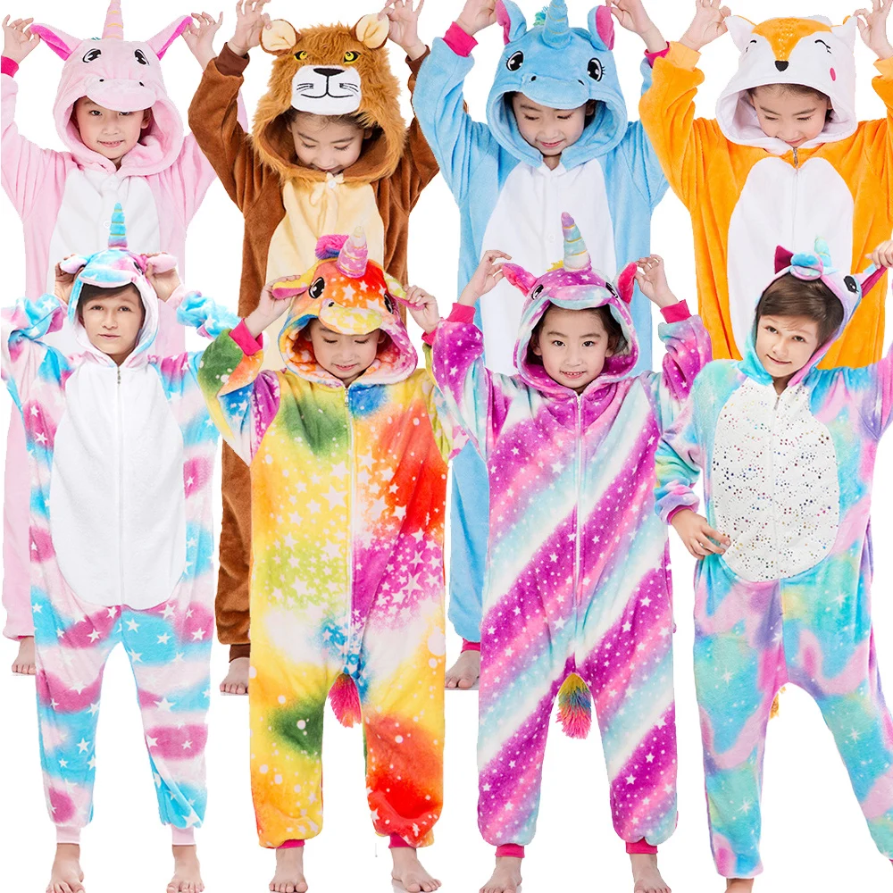Kigurumiдетская одежда для сна с единорогом для мальчиков и девочек; фланелевые пижамы; Детские пижамы с единорогом; комплект зимних комбинезонов с животными