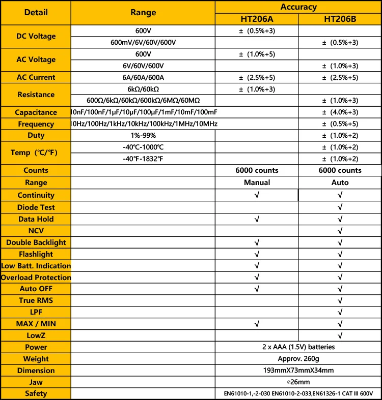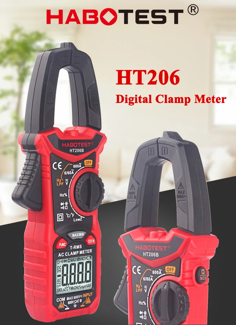 Мультиметр-клещи Habotest HT206B, цифровые, с истинным среднеквадратичным значением, емкостью Гц, Ом