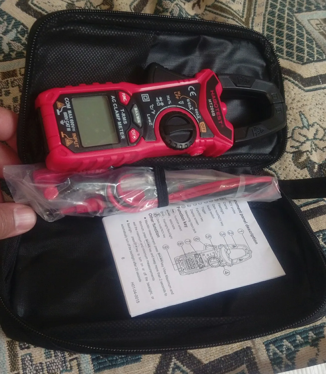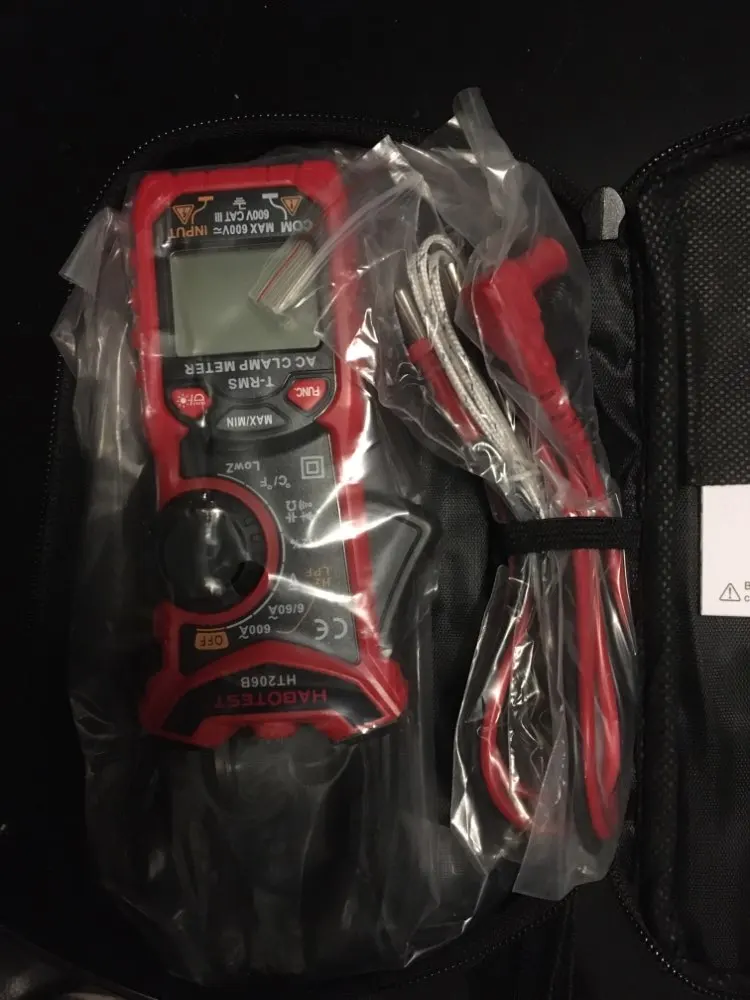 Пришло быстро, описанию соответствует. Из функций проверил только измерение температуры и измерение напряжения в розетке, а так же омметр, кейс удобный, упаковано хорошо. Щупы имеют съёмные колпачки, для защиты от случайного короткого замыкания металлической рабочей частью. За свою цену товар хорош, с задачами справляется.
