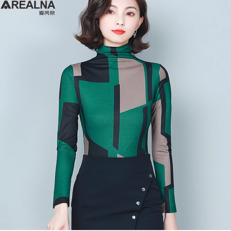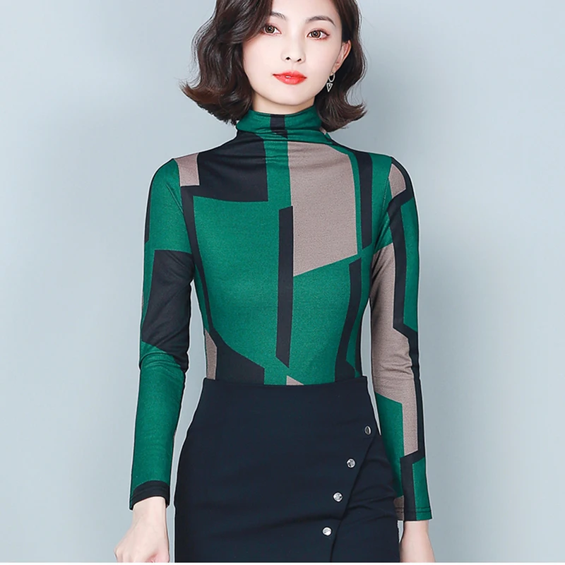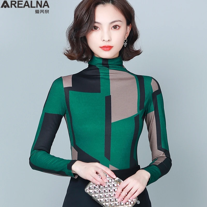 Женская винтажная блузка с цветочным принтом, зеленая сетчатая блузка с высоким воротником, облегающая леопардовая рубашка, весна 2021