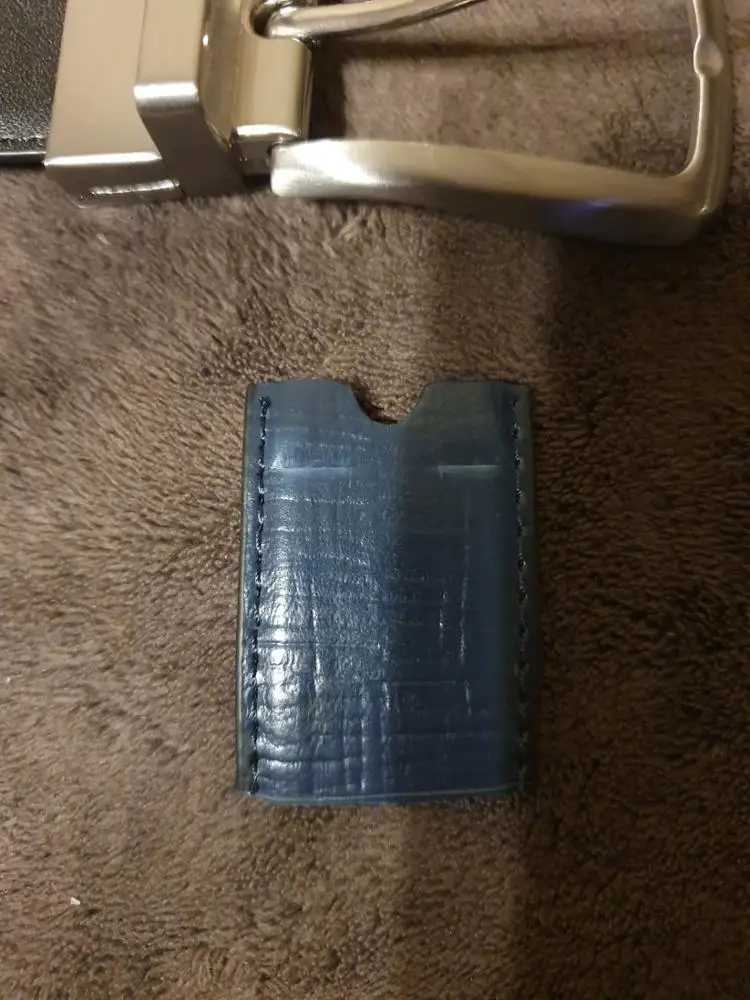 дошло за 2 недели до Питера, с одной стороны темно-синий, фактурный как на фото лота, с другой - гладкий черный как на фото с черным ремнем, по ощущениям ( как и предполагал) - покрытие долго не продержится и будет трескаться, слои - смотрите на фото (чуть подрезал ремень), в целом - хороший товар и две рабочих стороны - большой плюс