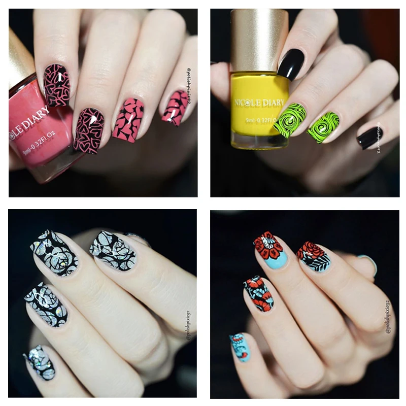 Пластины NICOLE DIARY для дизайна ногтей 9 мл стемпинг ногтей покрытие, черные, золотые, серебряные, белые, лак для печати, шаблон для ногтей 5 мл