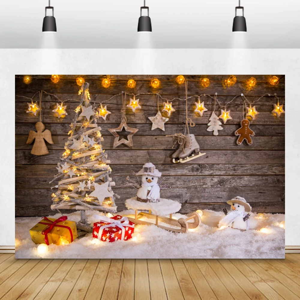 Laeacco рождественские праздники дерево снег горошек звезда подарок вечерние Игрушки для малышей портрет фото фон для фотосъемки фон