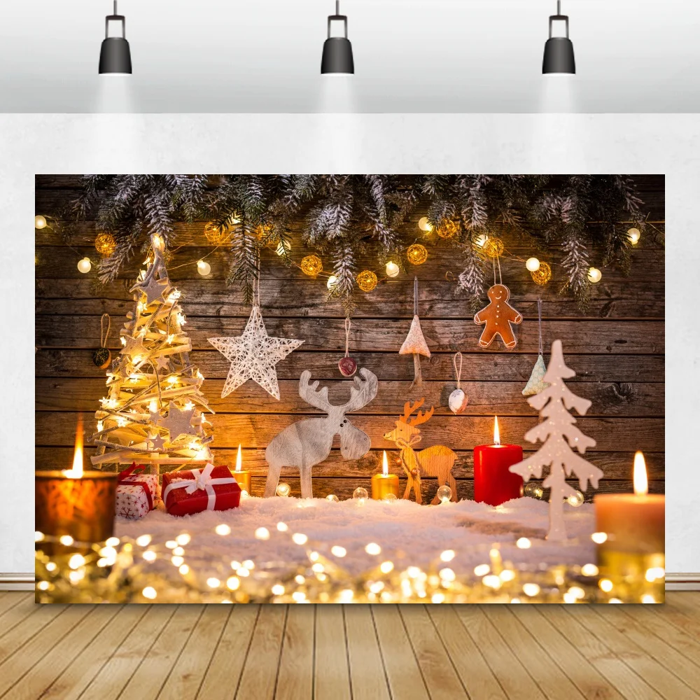 Рождественский Фотофон Laeacco, деревянная доска, олень, свеча, сне...