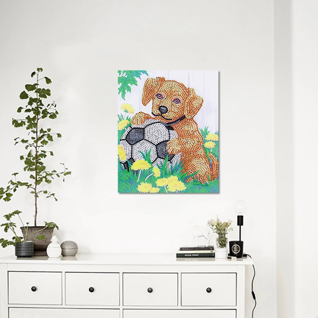 Картина из квадратных страз, цветная Алмазная вышивка, собака, футбол, вышивка крестиком, Алмазная мозаика, украшение детской комнаты