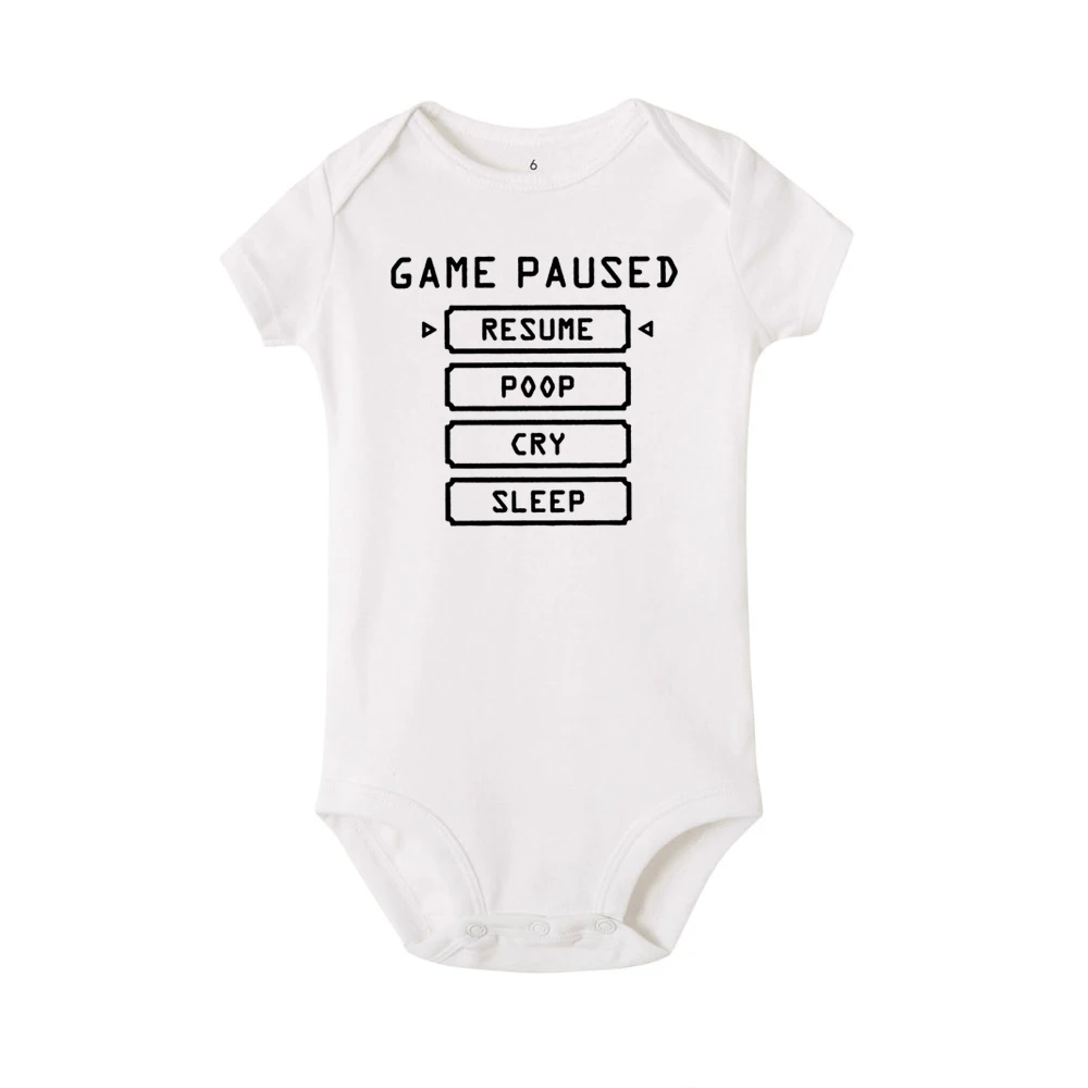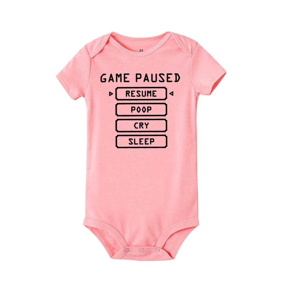 Игра на паузу, летняя модная одежда для новорожденных BabyRomper, Одежда для новорожденных, футболка для девочек и мальчиков с забавным на лямках для новорожденных девочек милый комбинезон