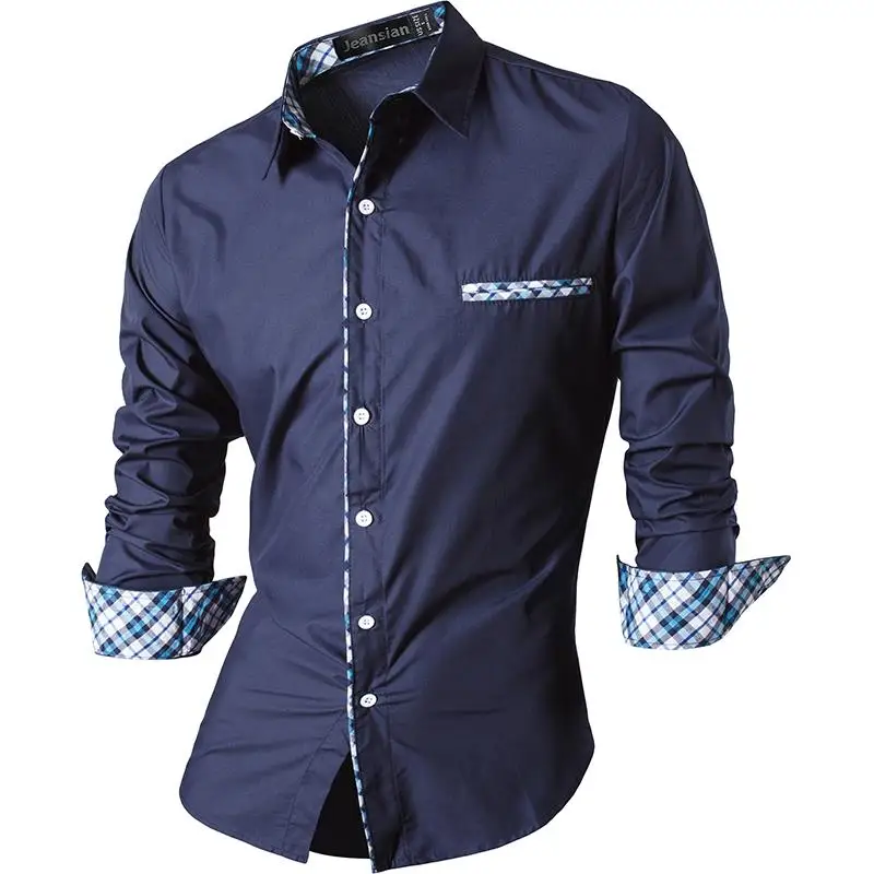 Мужские повседневные рубашки Jeansian, модный дизайн, стильные приталенные рубашки с длинным рукавом Z020 Navy2