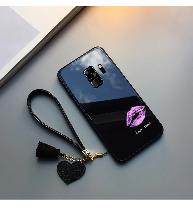 Чехол для Samsung Galaxy s9, s8, S20 plus, чехол из закаленного стекла с сердечками для Samsung Galaxy Note 9, 8, s8, s9, чехол с кисточкой и ремешком