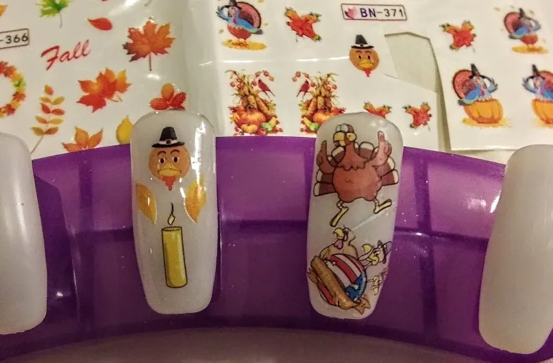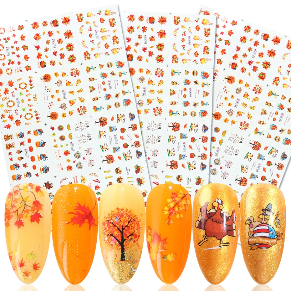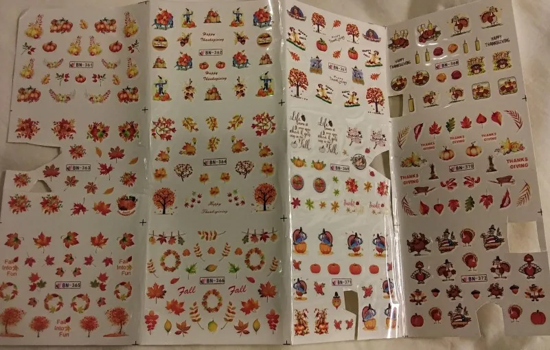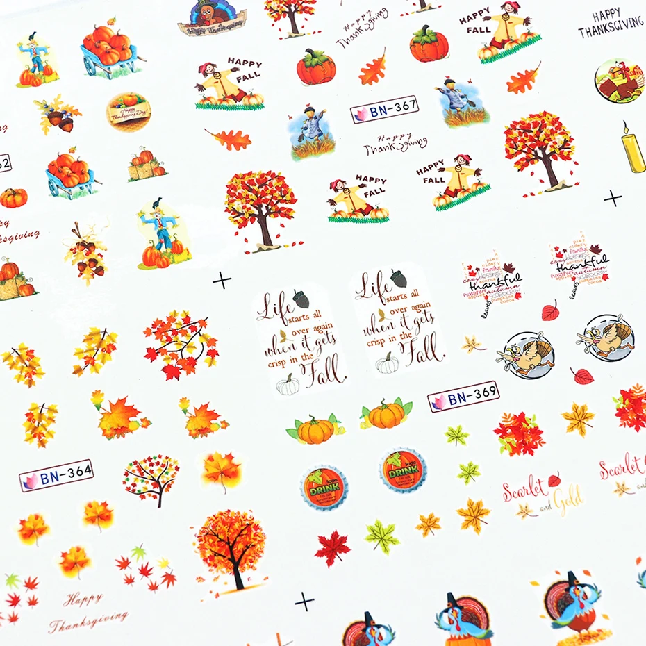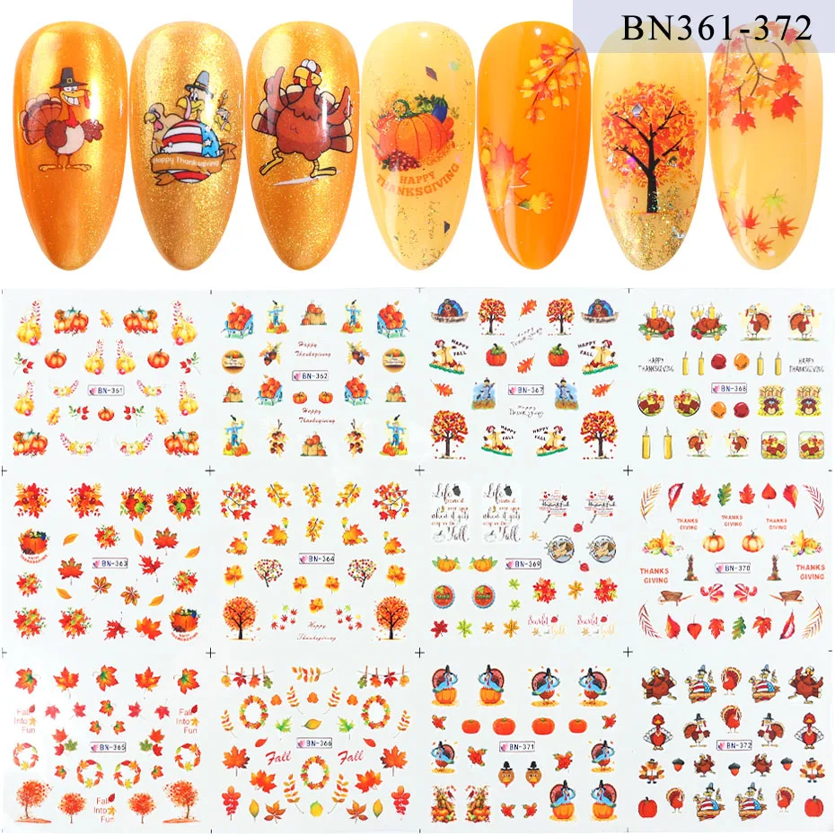 Наклейки для дизайна ногтей, 12 дизайнов, водные наклейки для ногтей, сердце, любовь, индейка, кленовый лист, слайдер, татуировка, маникюр, декор BEBN361-372
