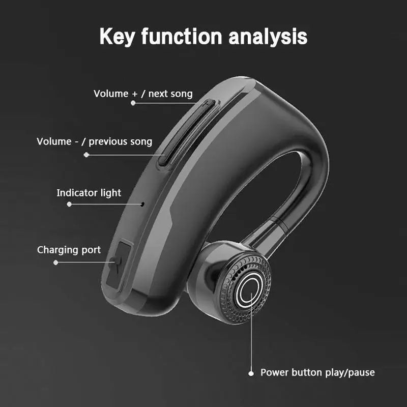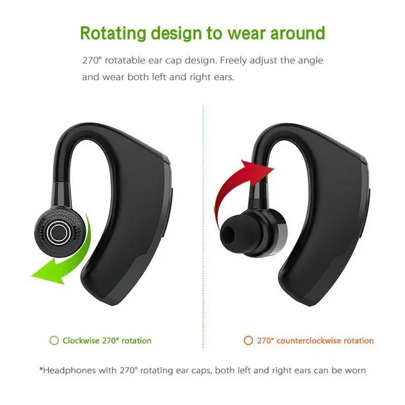 Особенности: -Отчет об идентификаторе вызывающего абонента: сообщите номер телефона, приостановите музыку для входящих звонков. -Распознавание голоса: Управление громкой связью без нажатия кнопок с помощью технологии распознавания голоса, просто скажите «да», чтобы ответить или сказать «нет», чтобы отказаться от вызова. -Технология шумоподавления: технология тройного микрофона подавляет фоновый шум и шум ветра в толпе. -Технология защиты от пота: защищает эту Bluetooth-гарнитуру от пота и разливов кофе, поэтому вы можете носить гарнитуру в офисе или в тренажерном зале. -Регулируемый ушной вкладыш на 270 ° позволяет регулировать угол, чтобы он соответствовал правому или левому уху. -Вы также можете перемещать микрофон стрелы вверх и вниз, это позволяет людям легко определить, звоните вы по телефону или нет. -Увеличение емкости аккумулятора обеспечивает максимально длительное время использования (при полной зарядке), он отображает счетчик аккумулятора на вашем смартфоне, напомнит вам о быстрой зарядке в следующий раз: Время ожидания: 20 дней Время разговора: 10 часов Время воспроизведения музыки: 6-8 часов Время зарядки: 1-2 часа Упаковочный лист: 1 Bluetooth-гарнитура 1 * USB-кабель для зарядки 1 * Руководство пользователя 1 * коробка