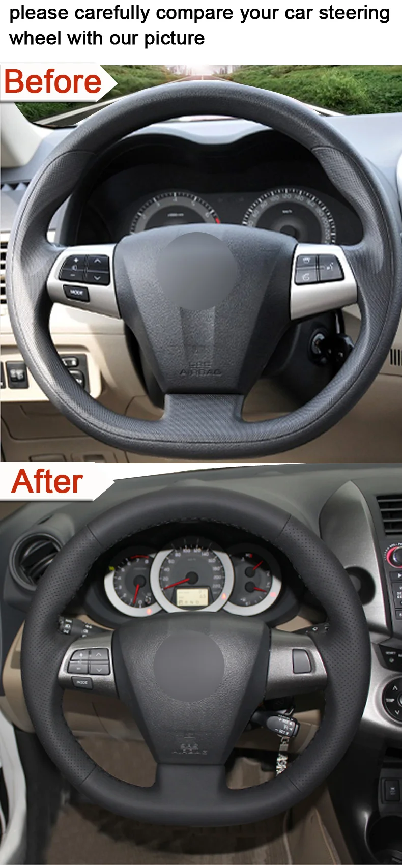Посылка содержит:1 чехол на руль,1 игла,1 нить,1 Двусторонняя лента,1 скребок.Пожалуйста, не снимайте оригинальную кожу!Примечание:1. Пожалуйста, дважды проверьте, что ваш Автомобильный руль такой же, как на нашей фотографии. Если то же самое, вы можете купить его. Если нет, предоставьте свое изображение рулевого колеса в службу поддержки клиентов.2. Материал изделия: Искусственная кожа (из микрофибры высокой плотности).3. Если вам нужна индивидуальная Настройка, пожалуйста, свяжитесь со службой поддержки клиентов.4. Пожалуйста, не снимайте оригинальную кожу! Если требуется разборка, пожалуйста, предоставьте размер или свяжитесь со службой поддержки клиентов.Если у вас есть какие-либо вопросы, пожалуйста, свяжитесь с нами, мы своевременно ответим на ваши вопросы.