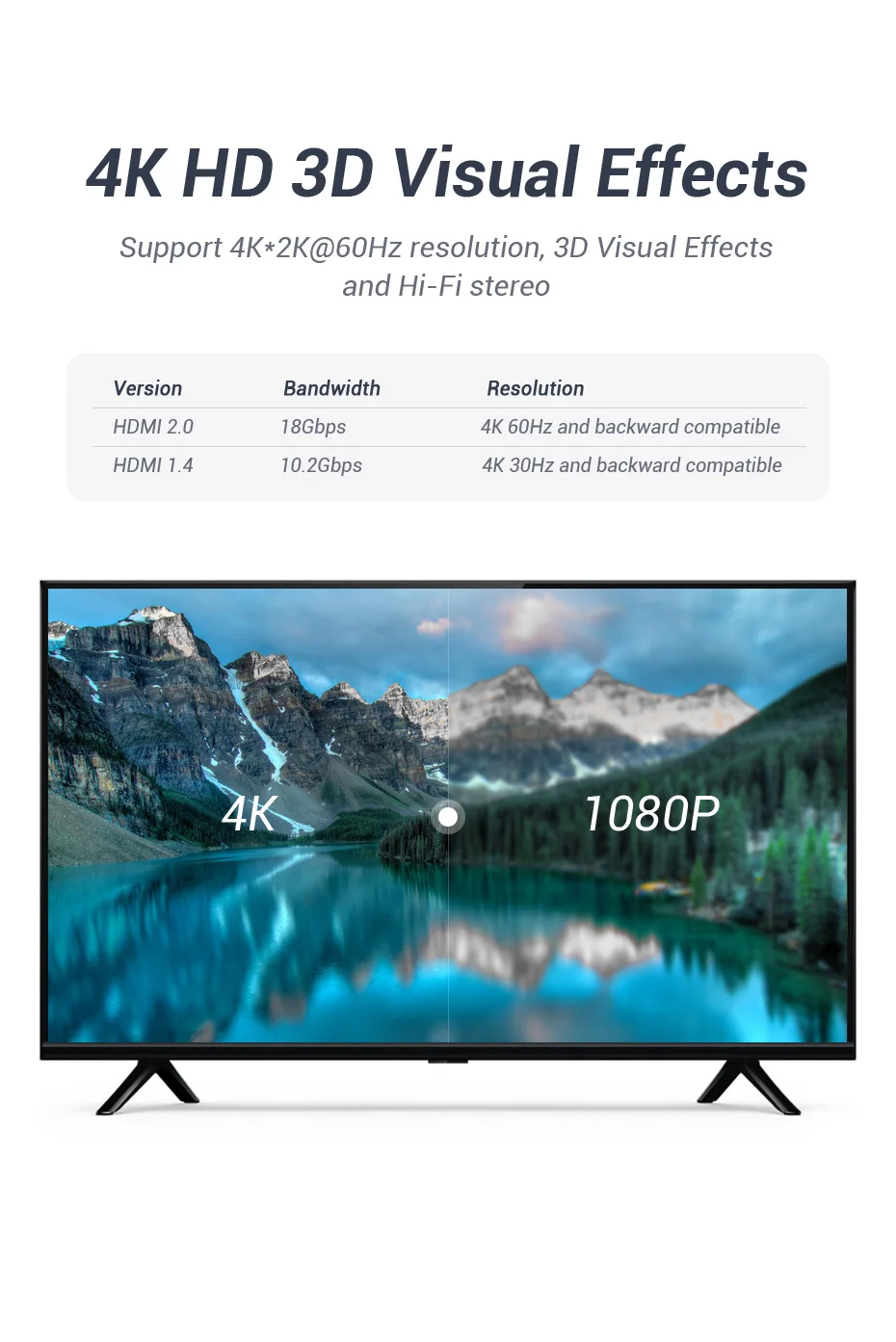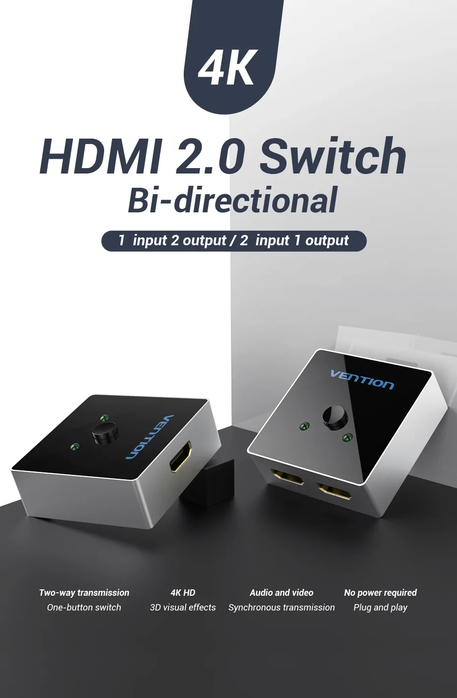HDMI сплиттер Vention, сплиттер с одного входного HDMI сигнала на два выходных HDMI сигнала, 4K, 1x22x1, HDMI коммутатор на два выхода для ТВ-приставки, новинка 2,0