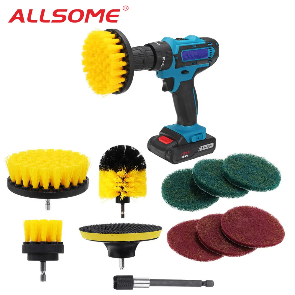 Электрическая щетка для чистки дрели ALLSOME, 11 шт., с губкой и удлинителем
