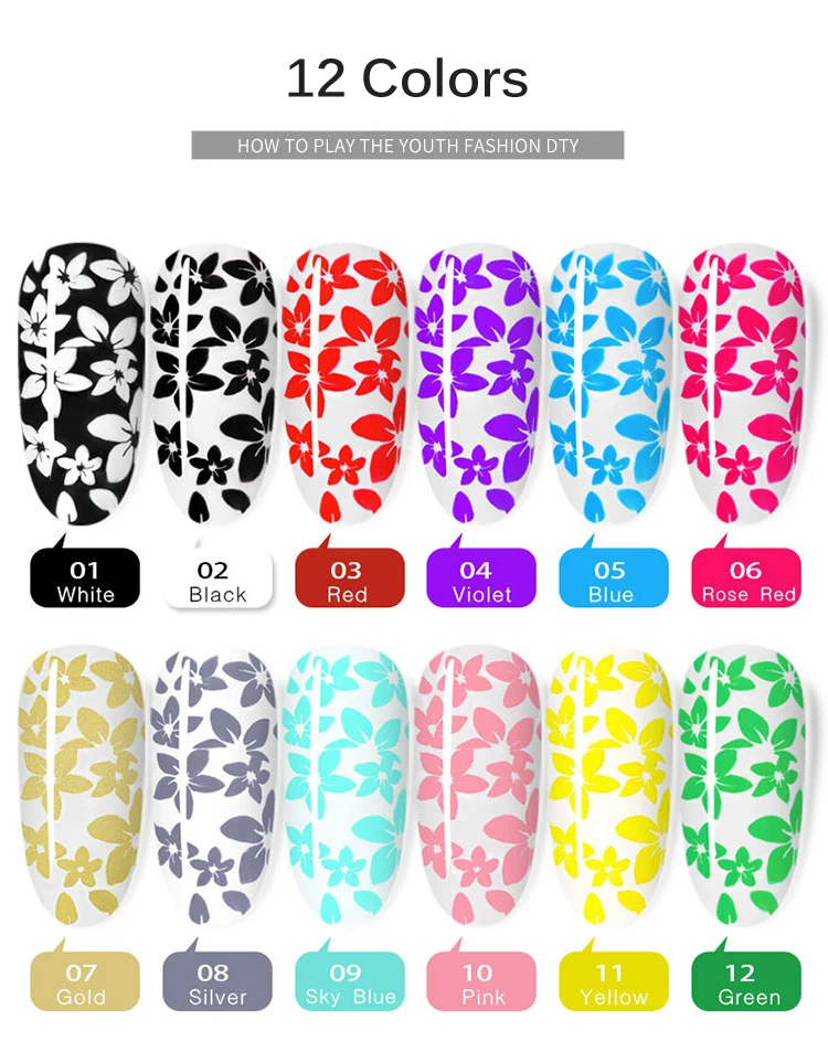 Специальный гель для ногтей для дизайна ногтей, штамповки и печати цветов.Превосходное качество и новый товар.Может быть вырезан повторно, больше подходит для начинающих.Не требует скорости работы, больше подходит для начинающих.Нужно высушить УФ-лампой.