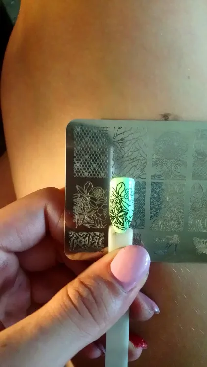 5. Нажмите кнопку stamper и возьмите шаблон.6. Перенос на ногти и лечение под УФ лампой в течение 2 минут или под светодиодный светильник в течение 30-60 секунд.7. Шелушение латекса для ногтей.8. Нанесите верхнее покрытие и закрепите под УФ лампой в течение 2 минут или под светодиодный светильник в течение 30-60 секунд. Закончено.
