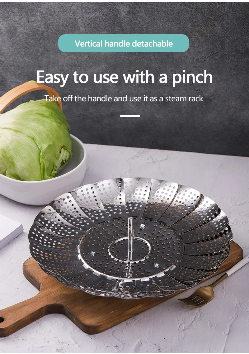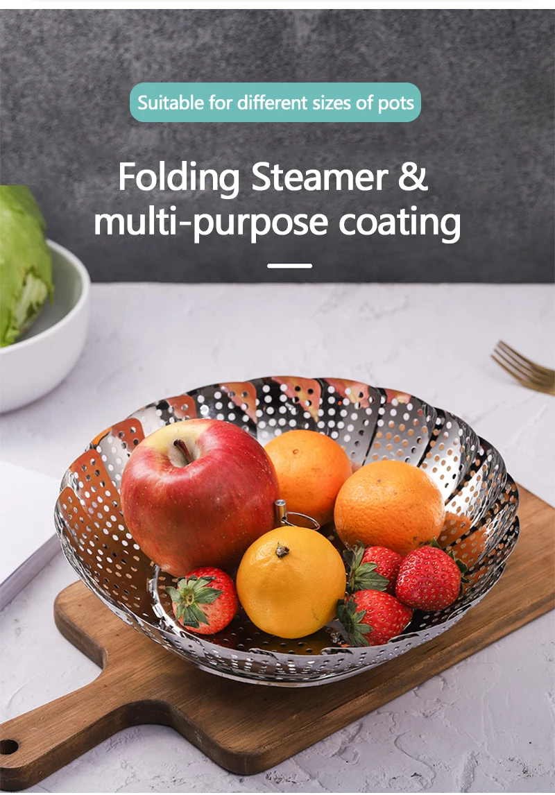 Складное блюдо, пароварка, корзина для продуктов из нержавеющей стали, сетка, пароварка для овощей, пароварка, расширяемый кухонный инструмент, пароварка