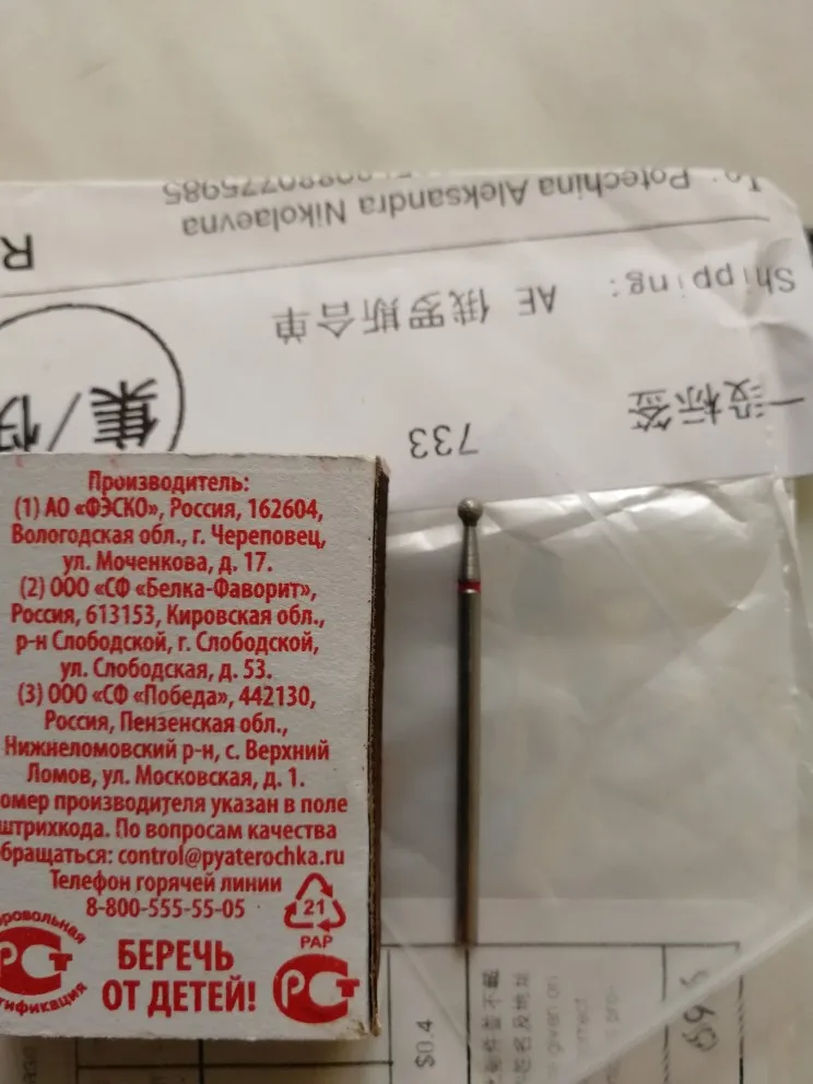 Отличная фреза, соответствует описанию. Хорошо подходит для снятия гель-лака с помощью аппарата. До Москвы доехала быстро, за 2 недели. Спасибо