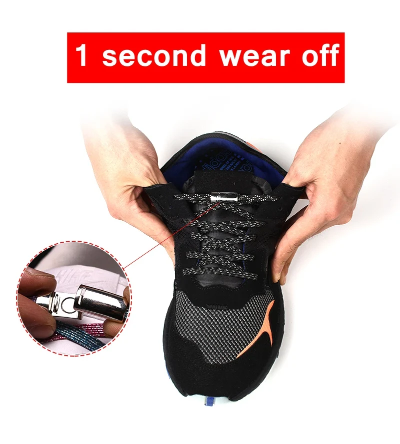 Шнурки без завязывания для обуви, эластичные магнитные безопасные, с быстрым замком, для ленивых, светоотражающие, для бега ночью, для детей и взрослых, 1 пара