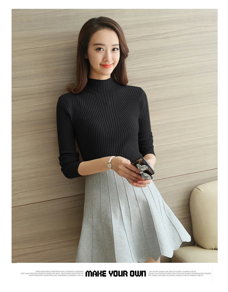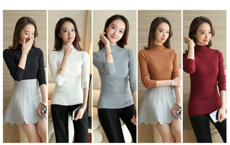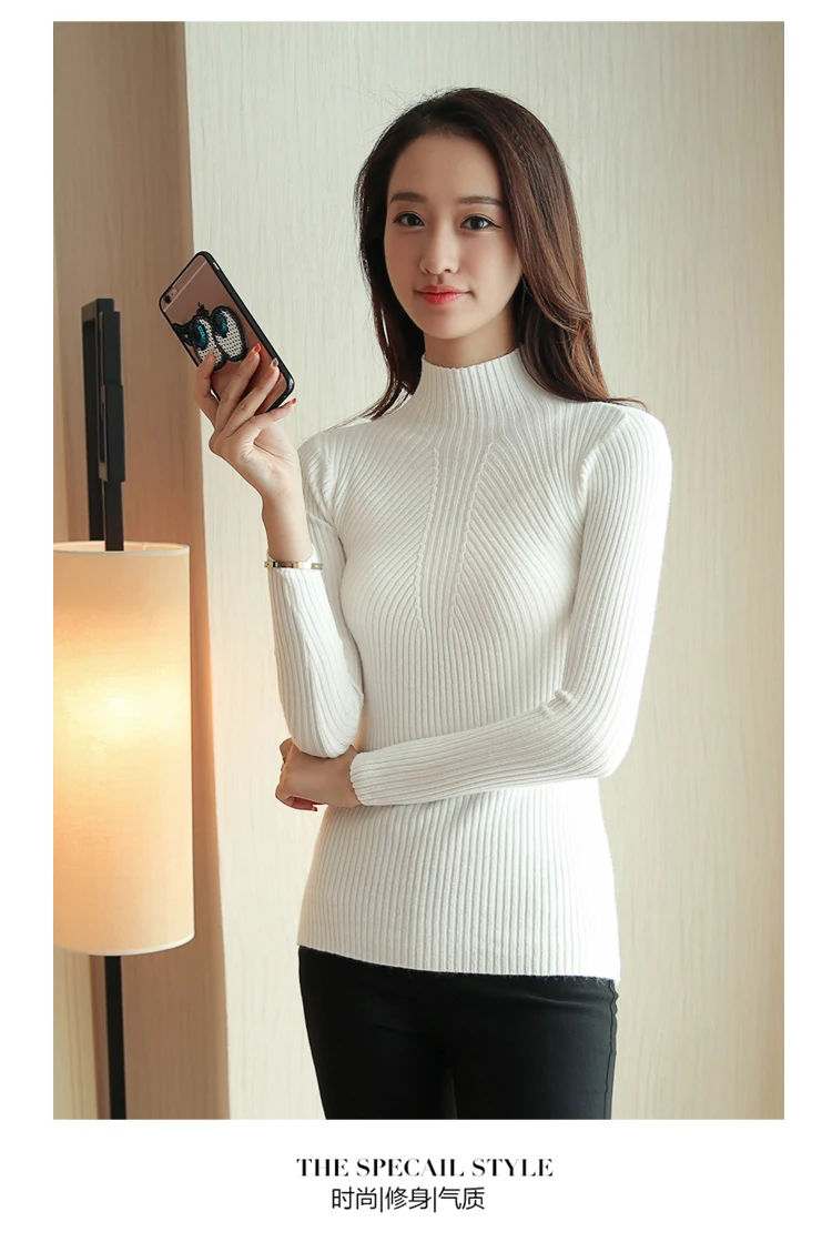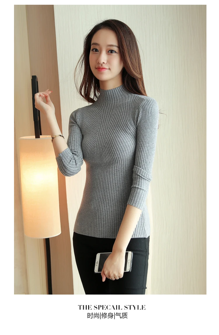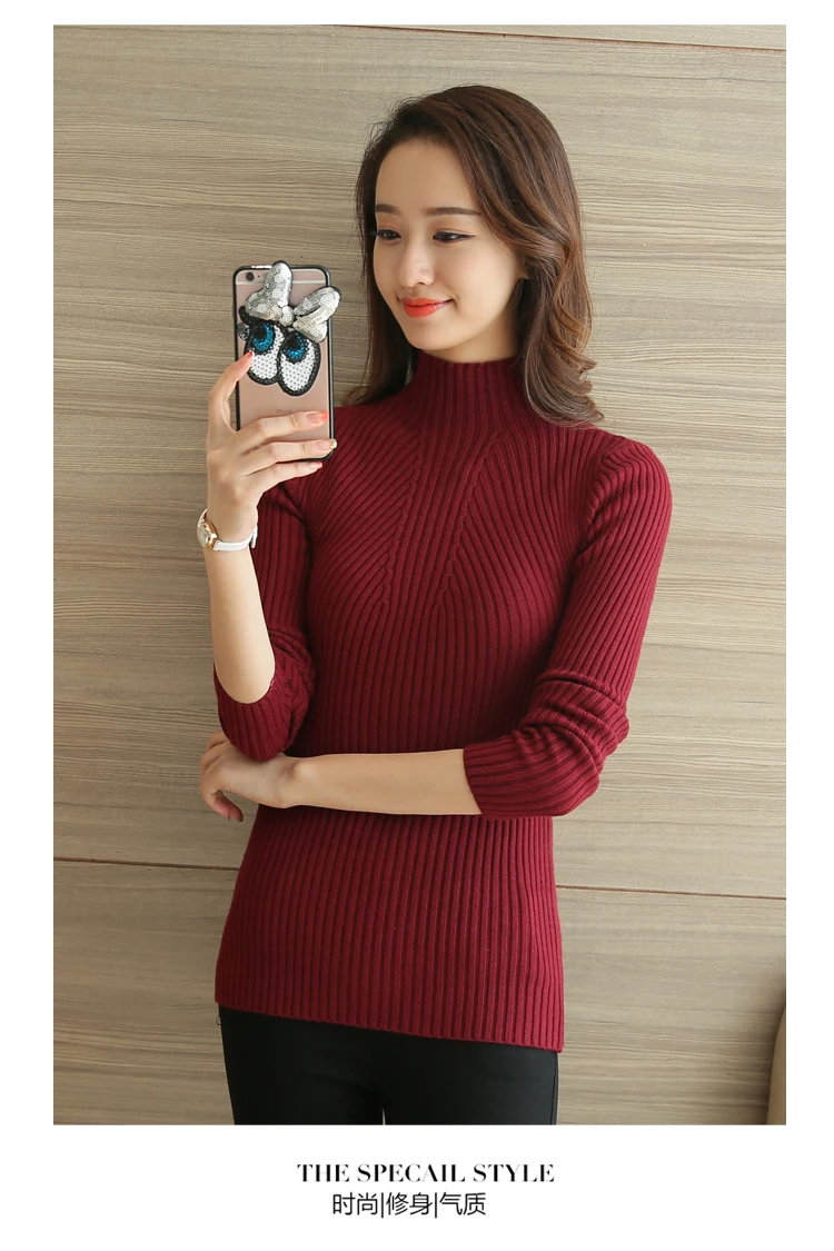 Свитер с высоким воротником, Женская мода 2022, весенние топы стрейч, женские вязаные пуловеры 14 цветов, базовый джемпер с длинным рукавом, вязаный свитер
