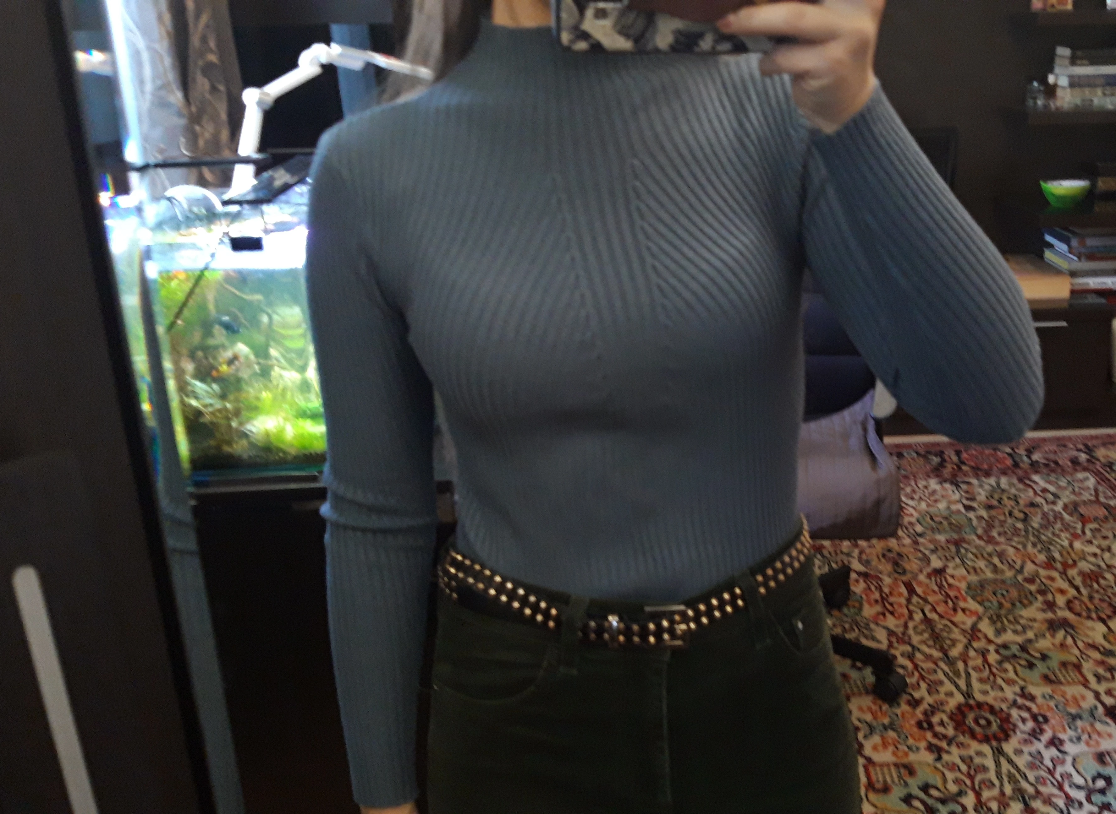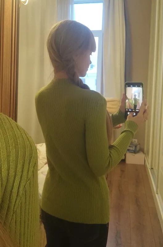Свитер на качество супер, мягкий и нежный. А вот в дину каратковат, под брюки или юбку с завышенной талией будет хорошо.