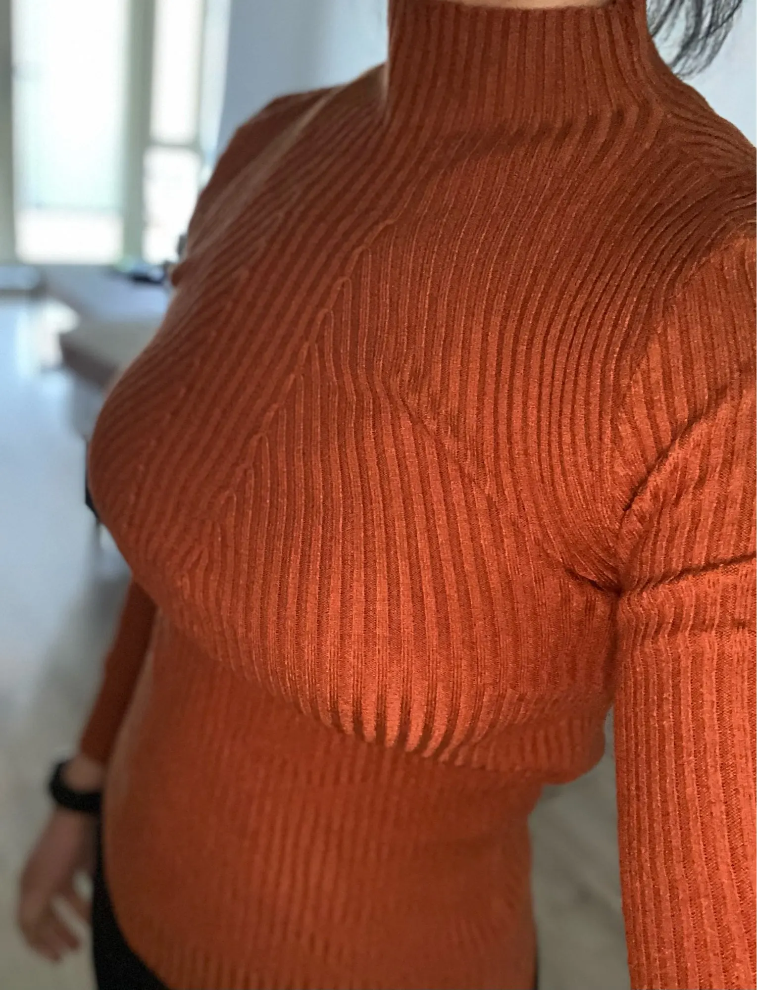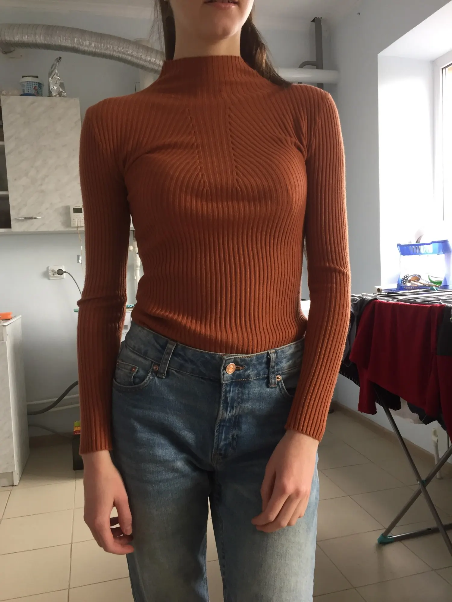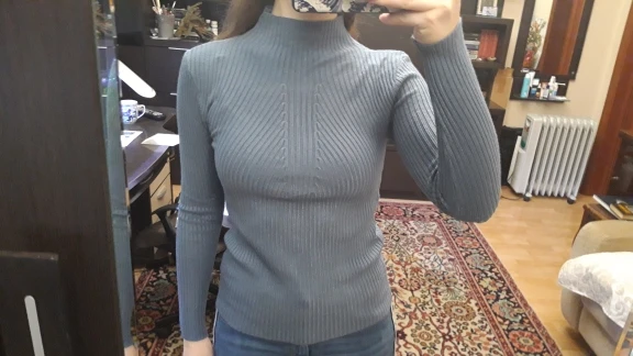 Качественная, очень приятная к телу водолазка. Цвет супер. Посылка пришла на почту через 10-12 дней. Продавца и товар рекомендую. Единственное, мне она немного большевата, но если заправить - ситуация улучшается (обхват груди - 78см, обхват талии - 58см). После стирки не растянулась и не села.
