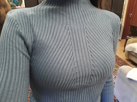 Гольфик тонкий, очень мягкий и хорошо тянется. На о.г.98 подошёл хорошо, и рукава на рост 164 не маленькие, а очень даже впору. Ещё один базовый гольф в моей коллекции. Покупкой я довольна, продавца рекомендую однозначно!!!