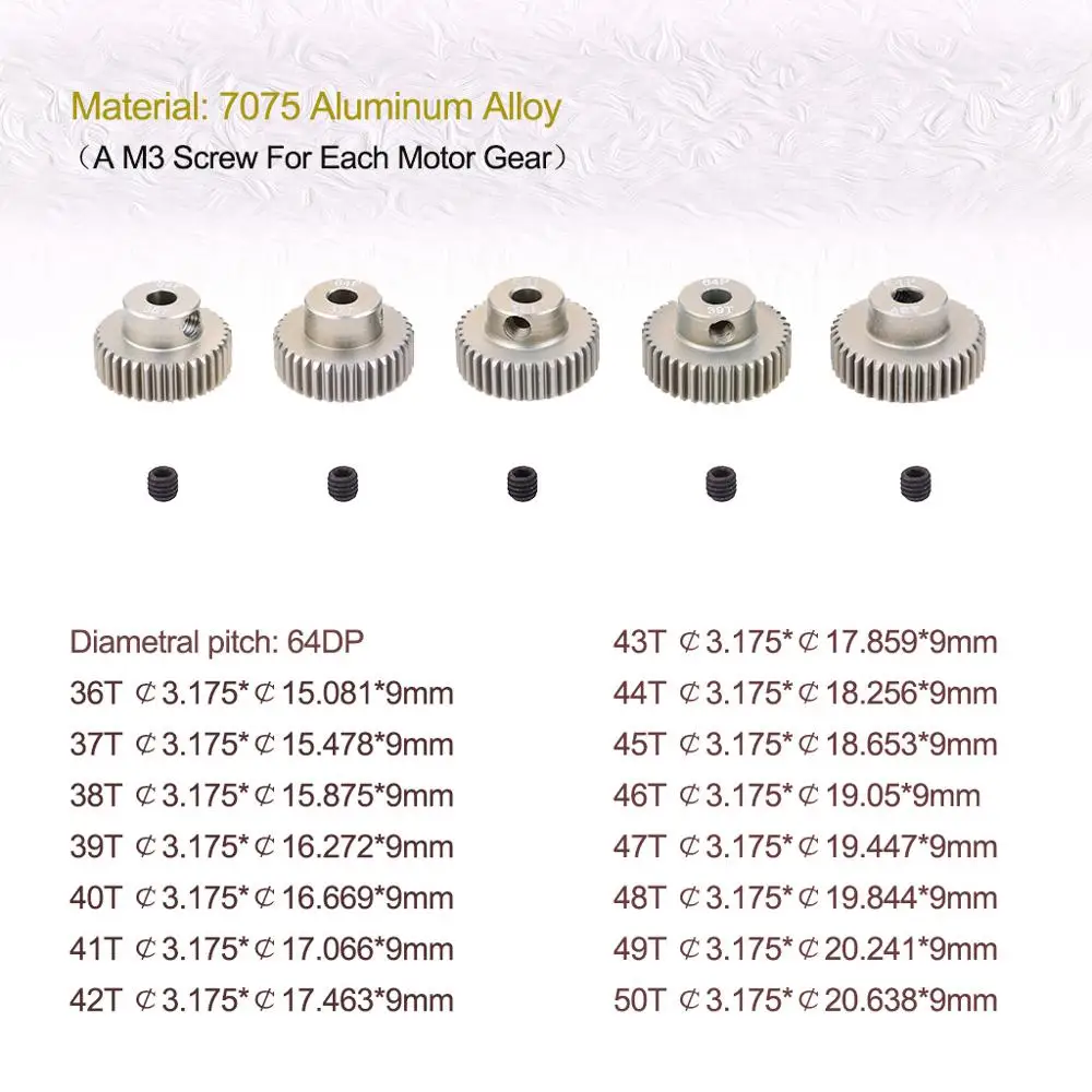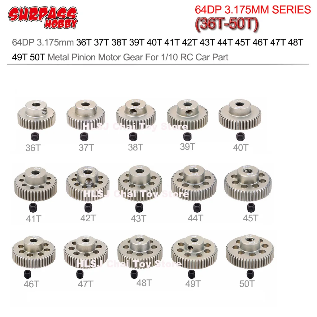 1 шт. 64DP 3,175 мм 36T 37T 38T 39T 40T 41T 42T 43T 44T 45T 46T 47T 48T 49T 50T Металлическая Шестерня для мотора автозапчасти 110 RC