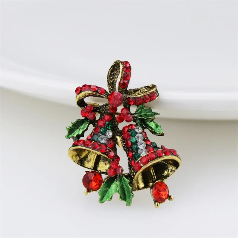 Рождественские Броши Булавки для костюма, Милые Броши для женщин с двумя бантами и колокольчиками, винтажные креативные подарочные украшения, аксессуары для пальто, платья