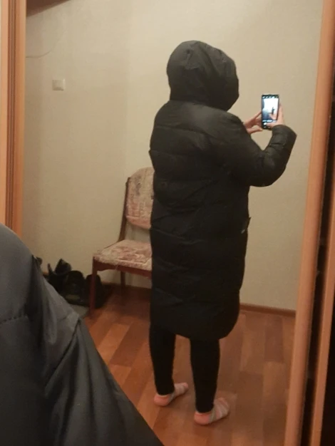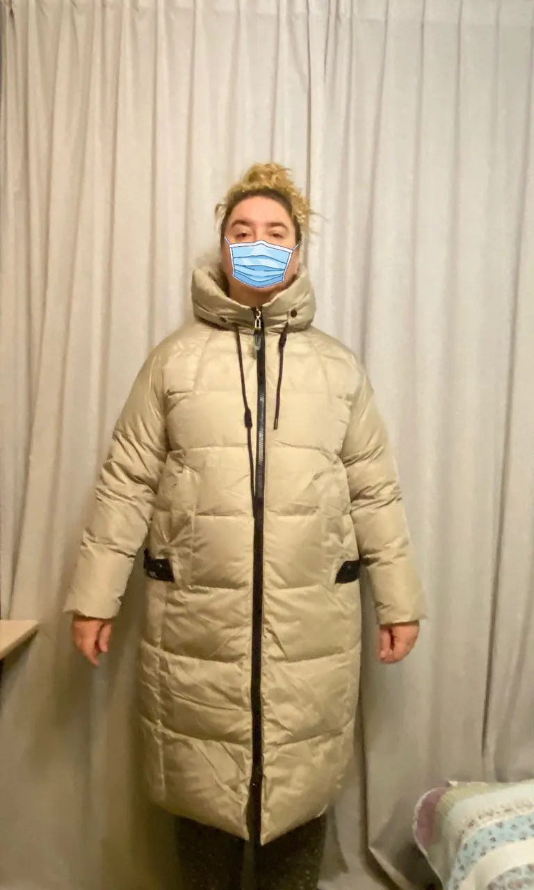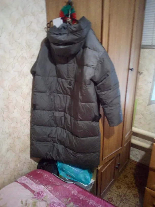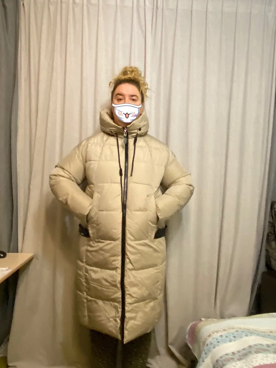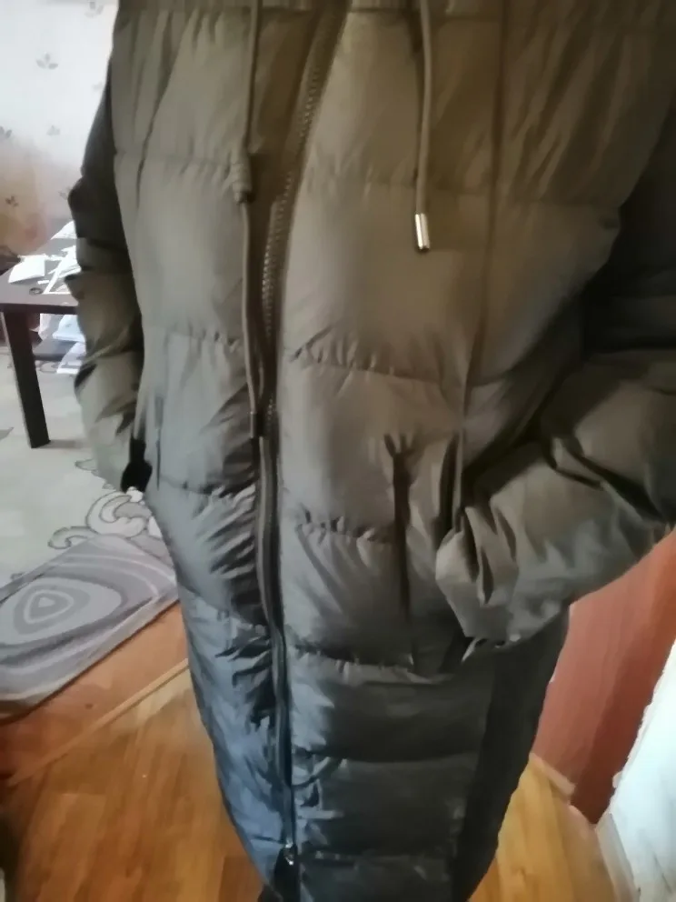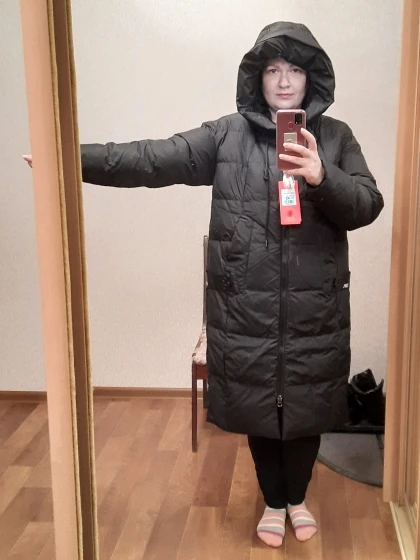 Спасибо, наконец-то пуховик пришел! До Тюмени месяц +2 дня, на сайте Почта России вообще не отслеживался. На свои параметры 106*106*106 и рост 165 заказала Л, подбирала по отзывам и таблице - еще свитера три можно надеть. С учётом того, что я то худею, то толстею, покупкой очеееень довольна, так как потолстею килограмма на 3, даже на 5 - место еще есть, похудею - тоже норм, так как оверсайз. А то мой шкаф набит пуховиками всех размеров, а моего не было до сегодняшнего дня. С достаточно полными руками, да и с животом чувствую себя в нем вполне свободно. Внутри есть вместительный карман. По бокам тоже, телефон 6дюймов влазит без проблем. Набивка пуховика достаточно плотная, как по мне. У нас тут морозы в НГ обещают под -35, постараюсь пуховик прогулять, чтобы было понимание тепло ли в нем. Продавец дал купон на $3, спасибо. Вообще, мне кажется, у нас такие пуховики от 8т.р. стоят, а я купила примерно за 3.3т.р. с учетом черной пятницы, купонов и промокода, так что я вообще в восторге.