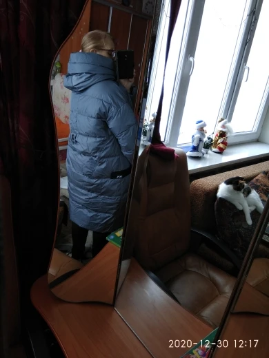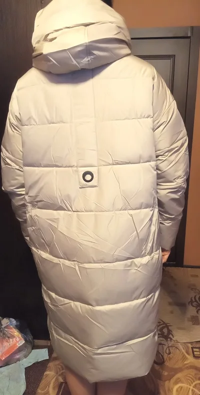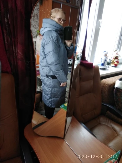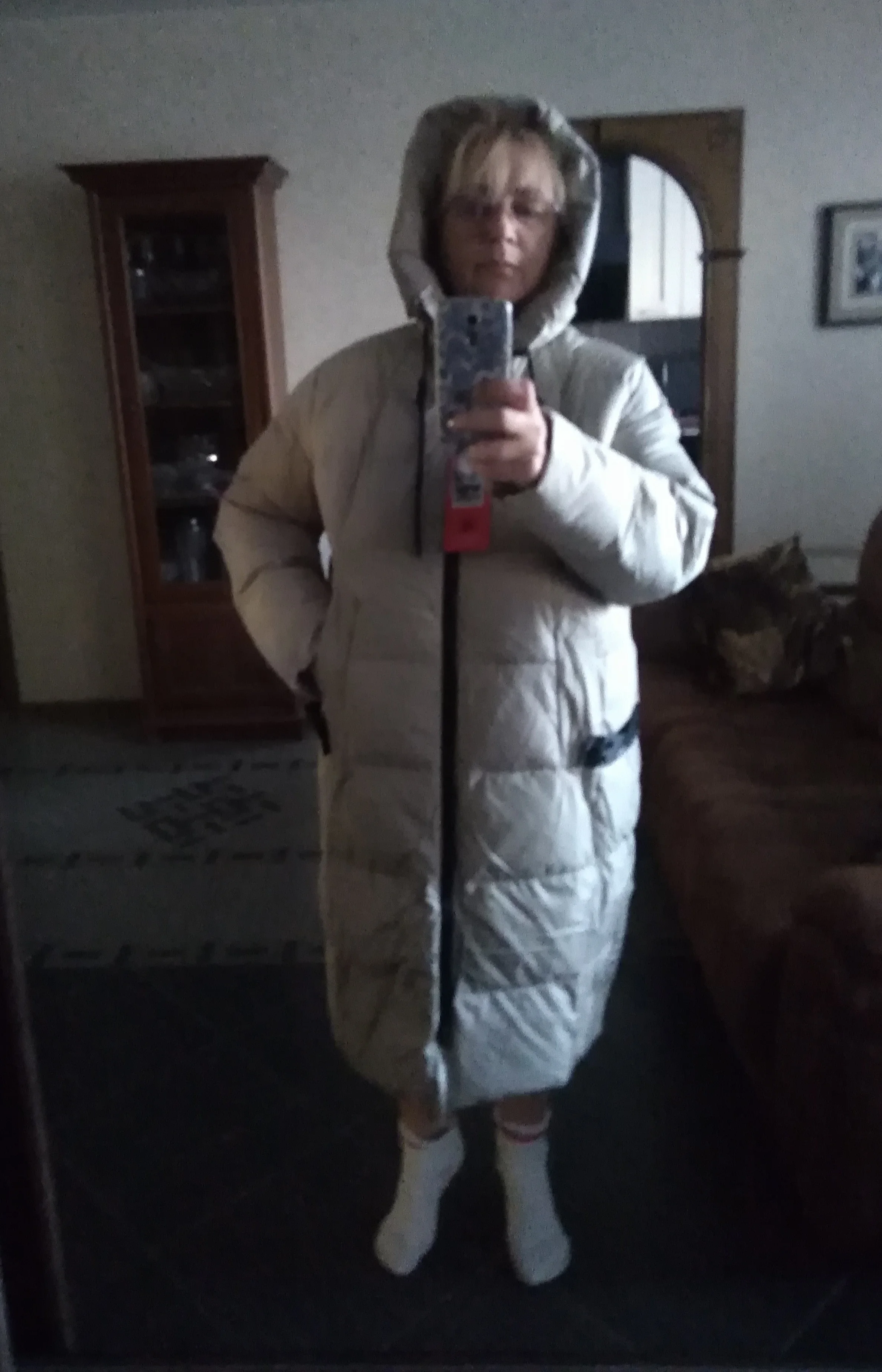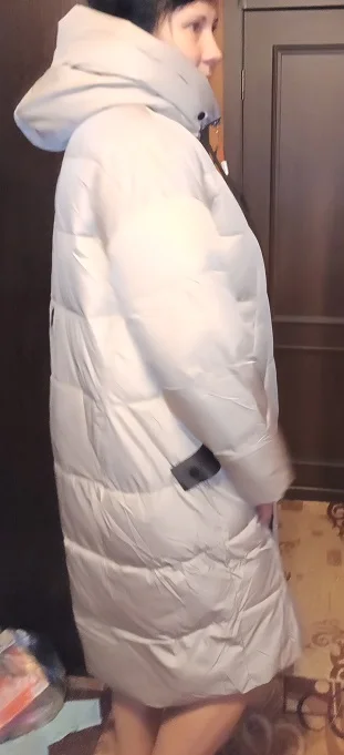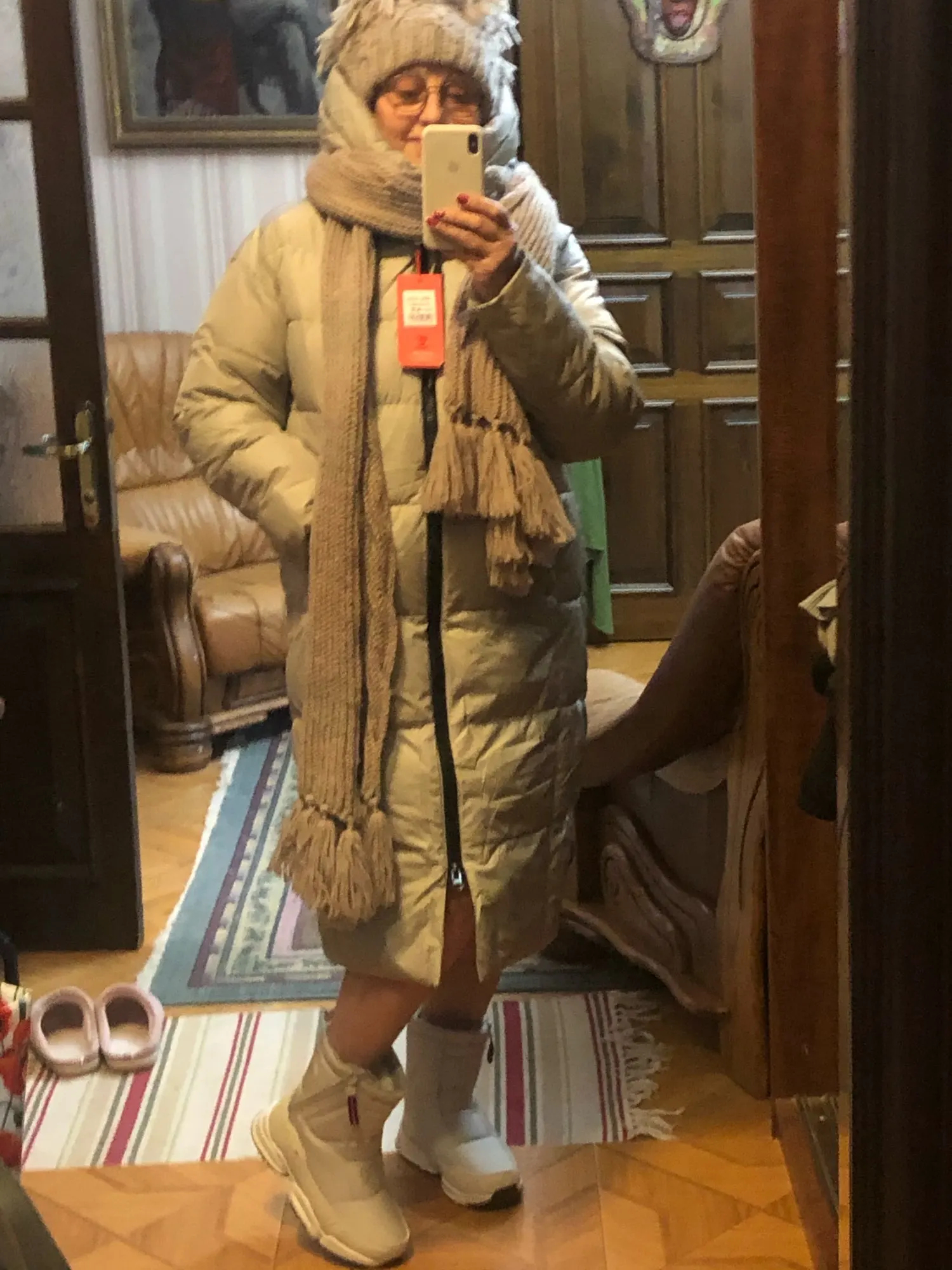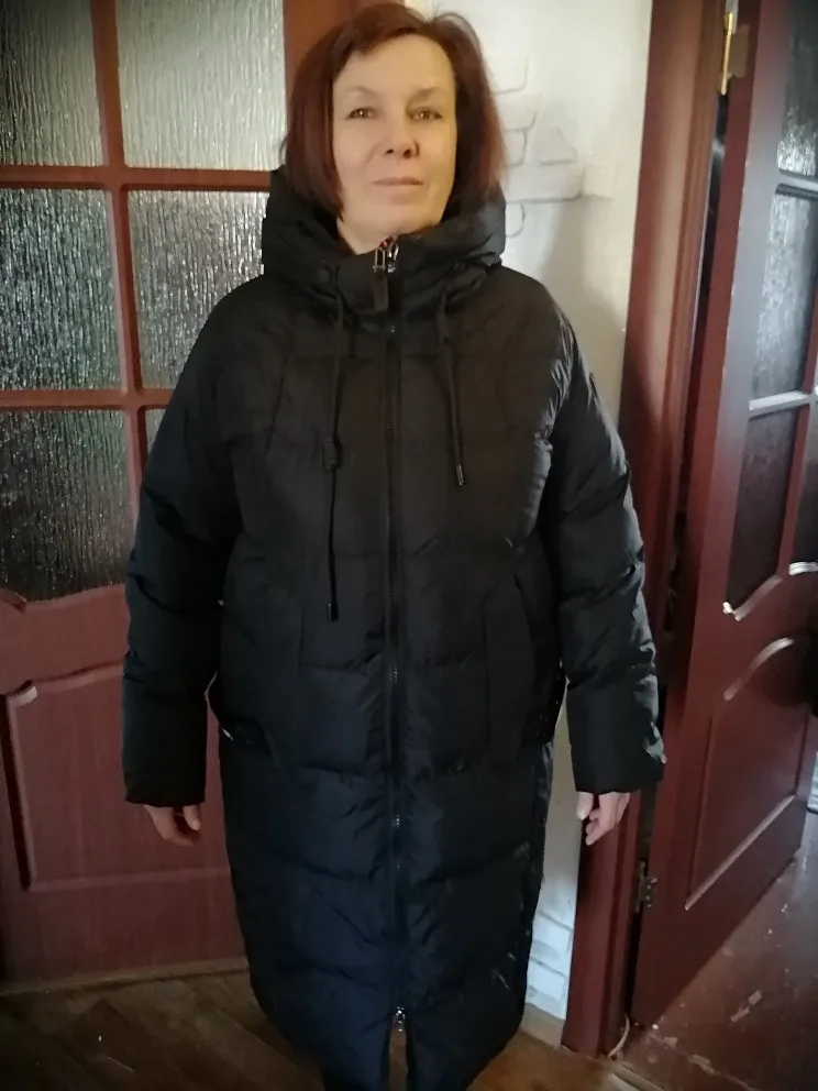 Спасибо, наконец-то пуховик пришел! До Тюмени месяц +2 дня, на сайте Почта России вообще не отслеживался. На свои параметры 106*106*106 и рост 165 заказала Л, подбирала по отзывам и таблице - еще свитера три можно надеть. С учётом того, что я то худею, то толстею, покупкой очеееень довольна, так как потолстею килограмма на 3, даже на 5 - место еще есть, похудею - тоже норм, так как оверсайз. А то мой шкаф набит пуховиками всех размеров, а моего не было до сегодняшнего дня. С достаточно полными руками, да и с животом чувствую себя в нем вполне свободно. Внутри есть вместительный карман. По бокам тоже, телефон 6дюймов влазит без проблем. Набивка пуховика достаточно плотная, как по мне. У нас тут морозы в НГ обещают под -35, постараюсь пуховик прогулять, чтобы было понимание тепло ли в нем. Продавец дал купон на $3, спасибо. Вообще, мне кажется, у нас такие пуховики от 8т.р. стоят, а я купила примерно за 3.3т.р. с учетом черной пятницы, купонов и промокода, так что я вообще в восторге.