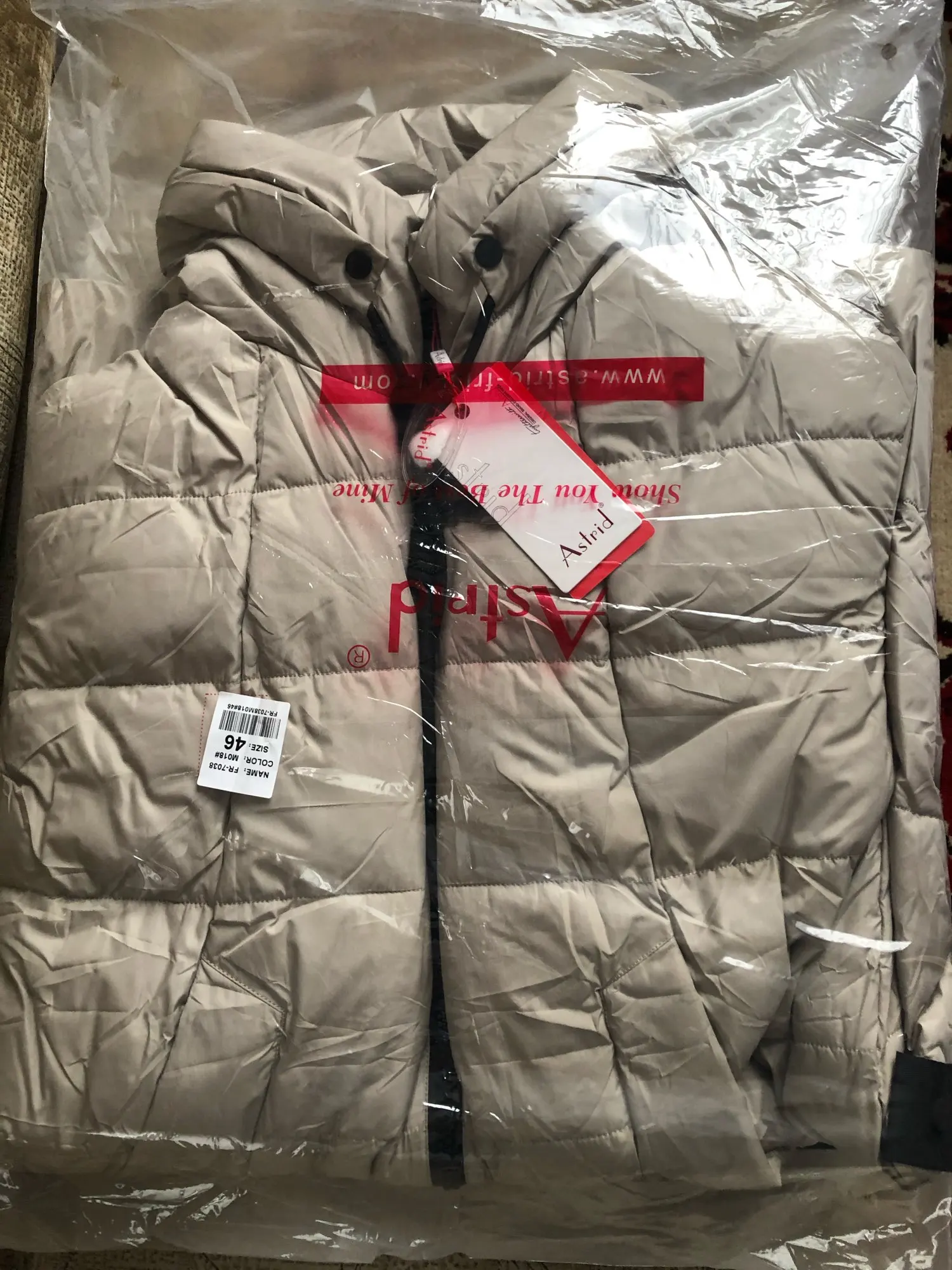 Брала по акции 11.11 получила в Новосибирске 27.11 через курьера. Сначала заказала XL, дня три продавец не отправлял покупку и у меня было время подумать, поменяла на L. Продавец отреагировал сразу согласием, и тем же вечером отправил мою покупку! На ОГ 100 размер L сел как небольшой оверсайз, но рукава не очень широкие, поэтому еще меньше размер я бы не хотела. Немного разочарована цветом - оказался темнее, чем на фото продавца и моих - беж песочный. Наполнитель местами лежит не ровно, есть небольшие пустоты. Опробовала на наши пока ещё не сильные морозы -15 с не очень теплой кофтой вполне комфортно. Рукав хорошей длины - мой рост 169 даже длинноват. Так что подойдет для дам более высоких. Из минусов - мелковатые наружные карманы. Есть внутренний, но если пользоваться им часто, боюсь быстро порвется. В общем-то покупкой довольна. Цена покупки по акции и с купонами составила 3800. Спасибо продавцу за товар! В подарок продавец положил купон на 3$.