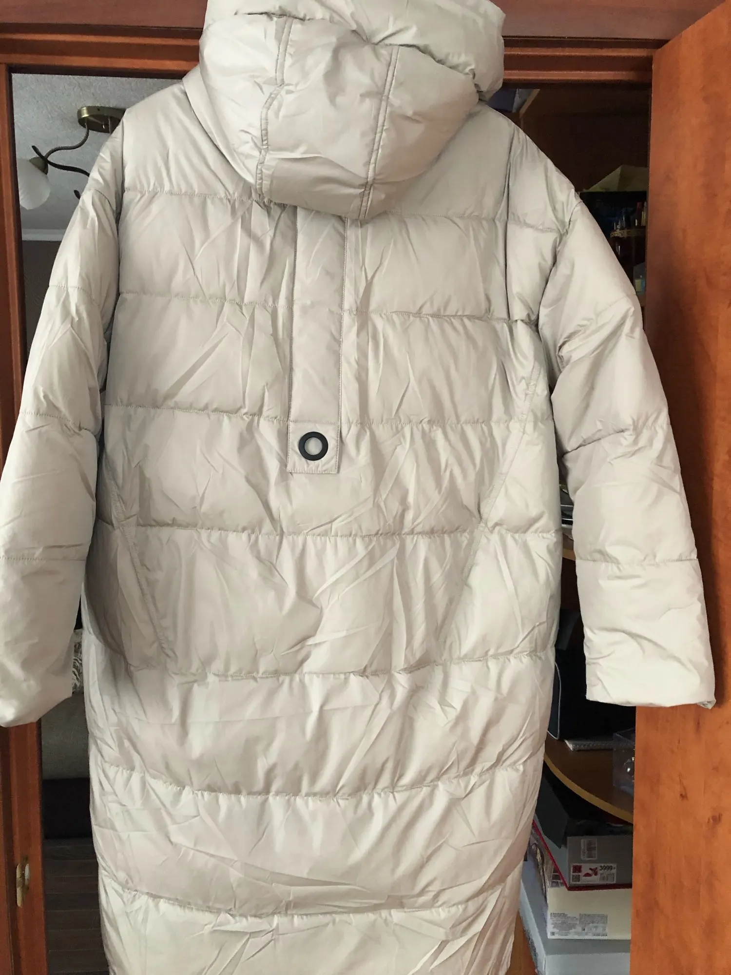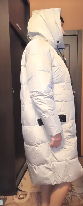 Отличный пуховик! Ждала месяц, сначала неделю не отправляли, потом мурыжили на таможне. Глубокий капюшон. Плечо немного спущено. На рост 157 до середины икры. Цвет ближе к серому. На ОГ 106, ОБ 112 размер XL сел оверсайз. Хорошо, что не заказала на размер больше, утонула бы.