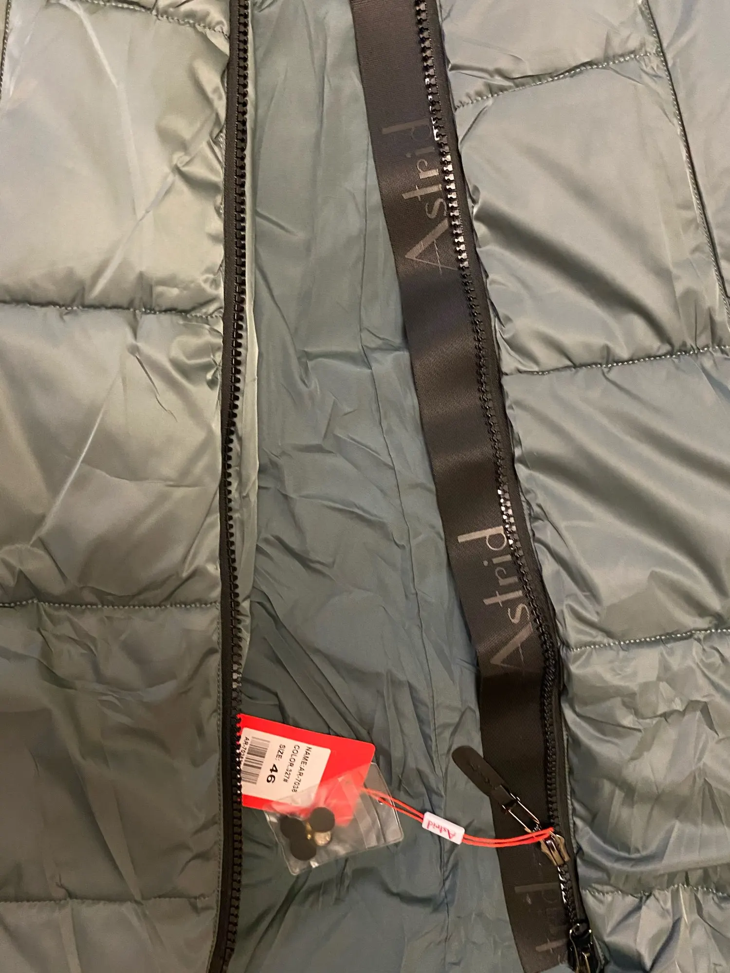 Пальто приехало быстро. Купила маме, ей отлично. На фото я, рост 167, об100, ог 94, от 70. Пальто тёплое, капюшон сидит хорошо, фурнитура отличная! В подарок купон на 3 доллара. Спасибо.
