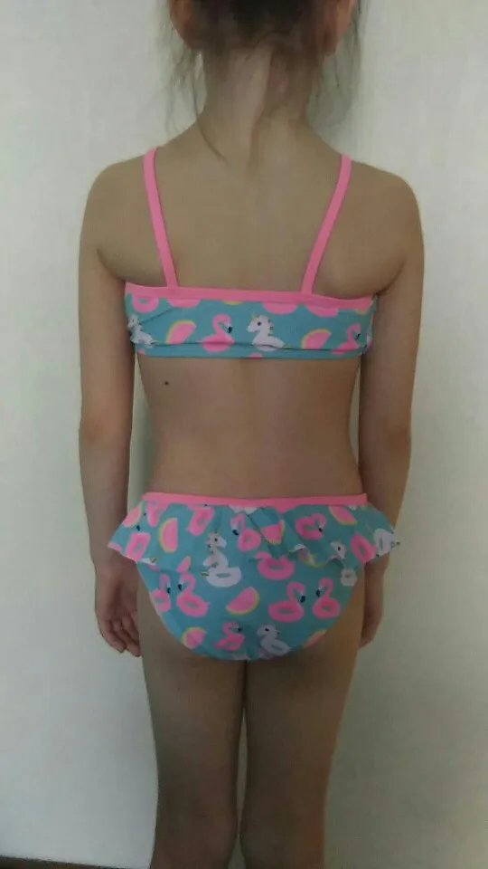 Брали мятный с фламинго размер 3-4 года на девочку рост 90, возраст 2,5 года. Трусы велики очень. Ушить не получится, поэтому закажу просто другой размер ещё)