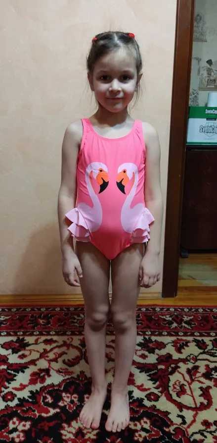 Купальник очень классный и яркий. Дочке 8 лет, брала размер на 7-8 лет, он ей оказался велик. Дочка худенькая, возможн на ребенка более плотного телосложения будет хорошо. К качеству претензий нет, доставка до Сочи 3 недели.
