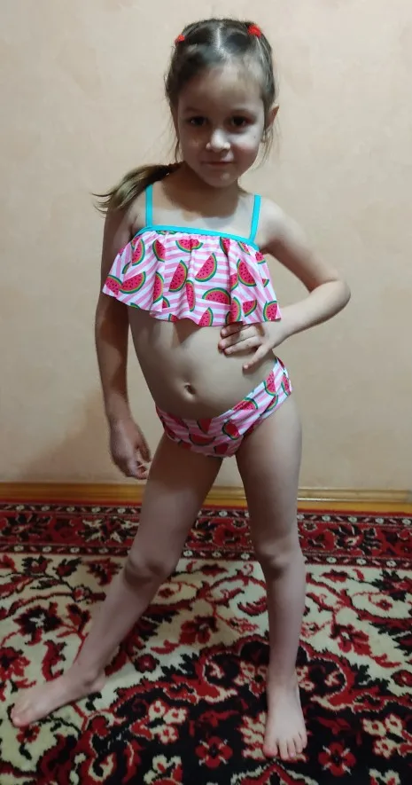Очень быстрая доставка, 2 недели. Размер 5-6 на рост 110 (среднее телосложение) купальник великоват. Трусики не регулируются. Цвет ярче чем на фото, более розовый. В целом хороший товар, спасибо продавцу!