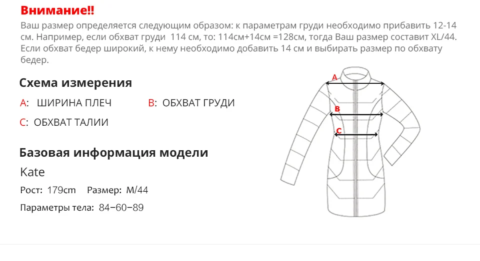 Заказывала размер 5XL. Очень понравилось: внешний вид - отличная ткань, матовая, не блестит. Хороший надежный замок, толстый пушистый мех, очень приятная на ощупь. Не понравилось: перемеряла 5 XL по верху куртки (ОГ=128, ОТ=132, ОБ=132)., т.е. размеры не соответствуют заявленным. Капюшон маленький, если застегнуть куртку до конца - вы не сможете дышать (очень маленькая горловина). В застегнутом состоянии капюшон на голову надеть невозможно. Карманы мелкие, не утеплены, без замков. В целом: очень красиво смотрится и можно носить - не одевая капюшон на голову, не застегивая замок до конца и не пользоваться карманами и брать на размер больше. Если бы производитель чуть доработал модель - куртка могла быть идеальной.