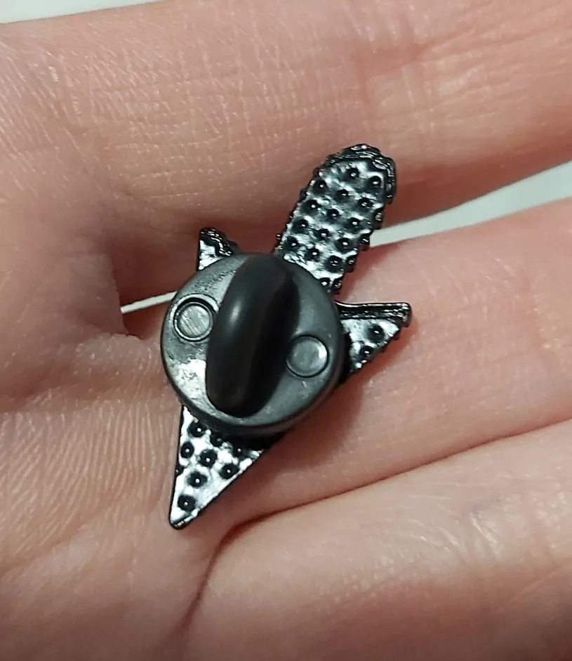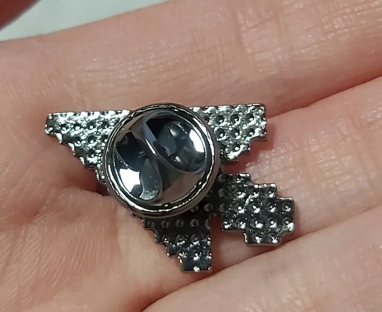 Значок очень классный, оказался больше чем я думала. Правда у него застёжка типо булавки, а не как у пинов обычно на мой взгляд не очень надёжная.